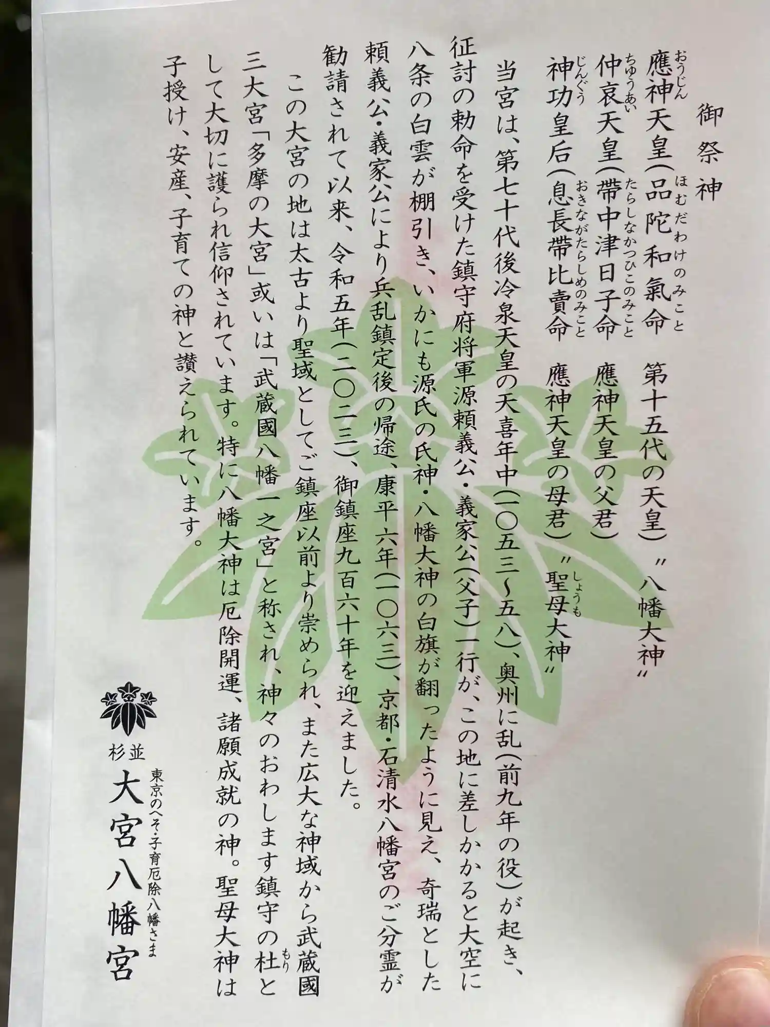 主祭神:八幡大神 仲哀天皇 神功皇后