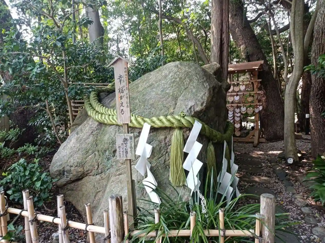 幸福撫でがえる石。