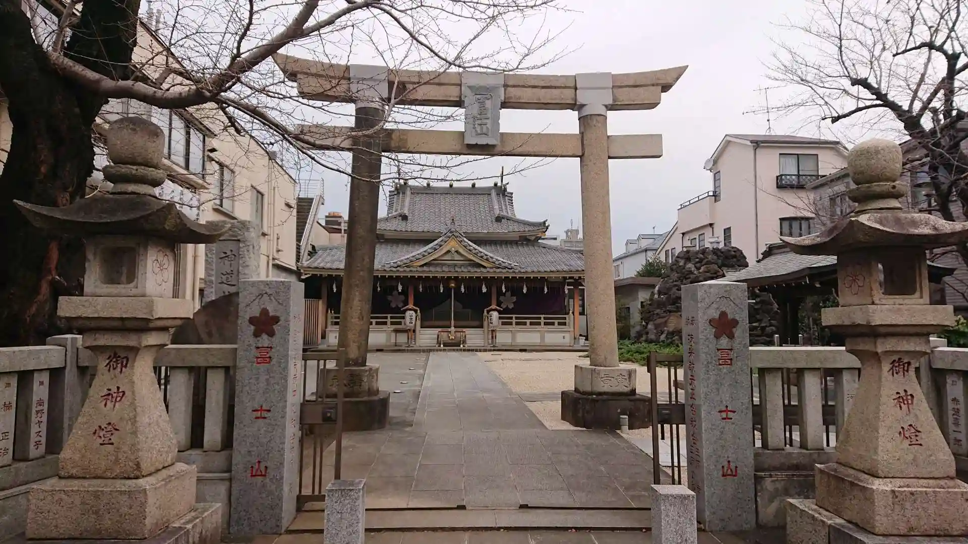 昼食で京王線明大前駅で下車したので、お詣りしてきました。本日2度目の富士塚です。
