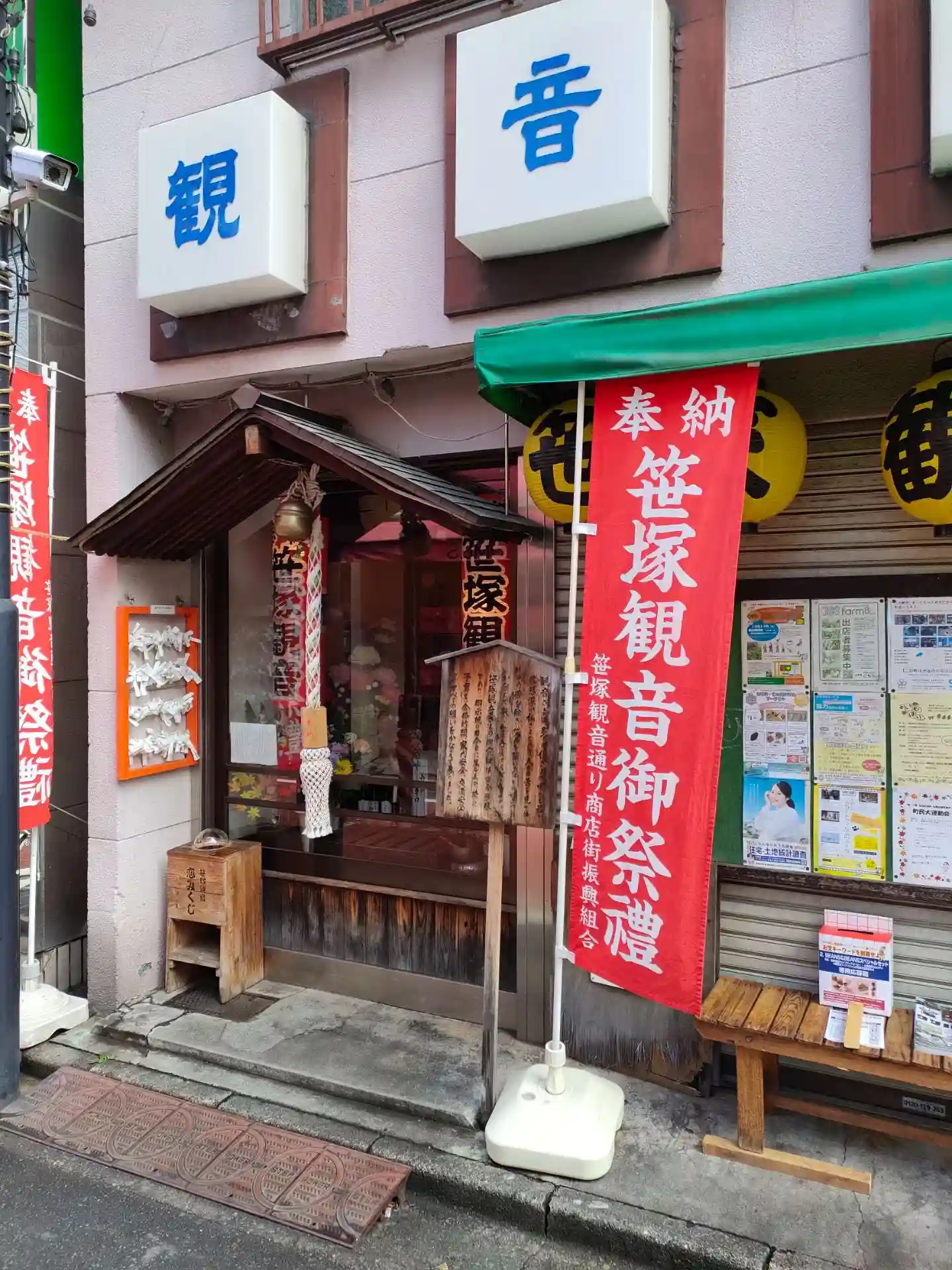 笹塚駅南口を出て、北沢方面に1、2分歩くと見えてくるのが、観音様を擁する笹塚観音通り商店街です。 毎月18日に笹塚聖観音のご開帳があります。