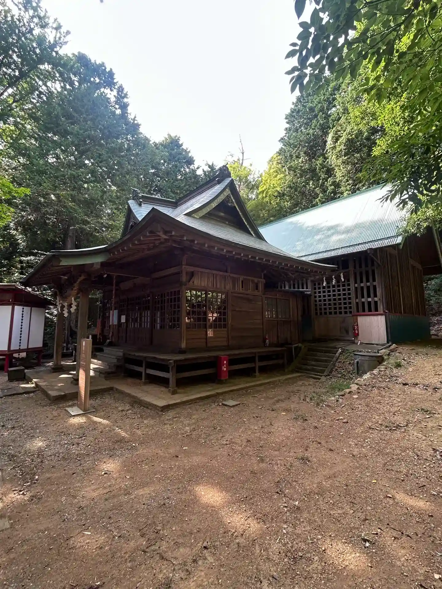 広場からは左に小さな川沿いに100mぐらい進むと神社の入口があります。