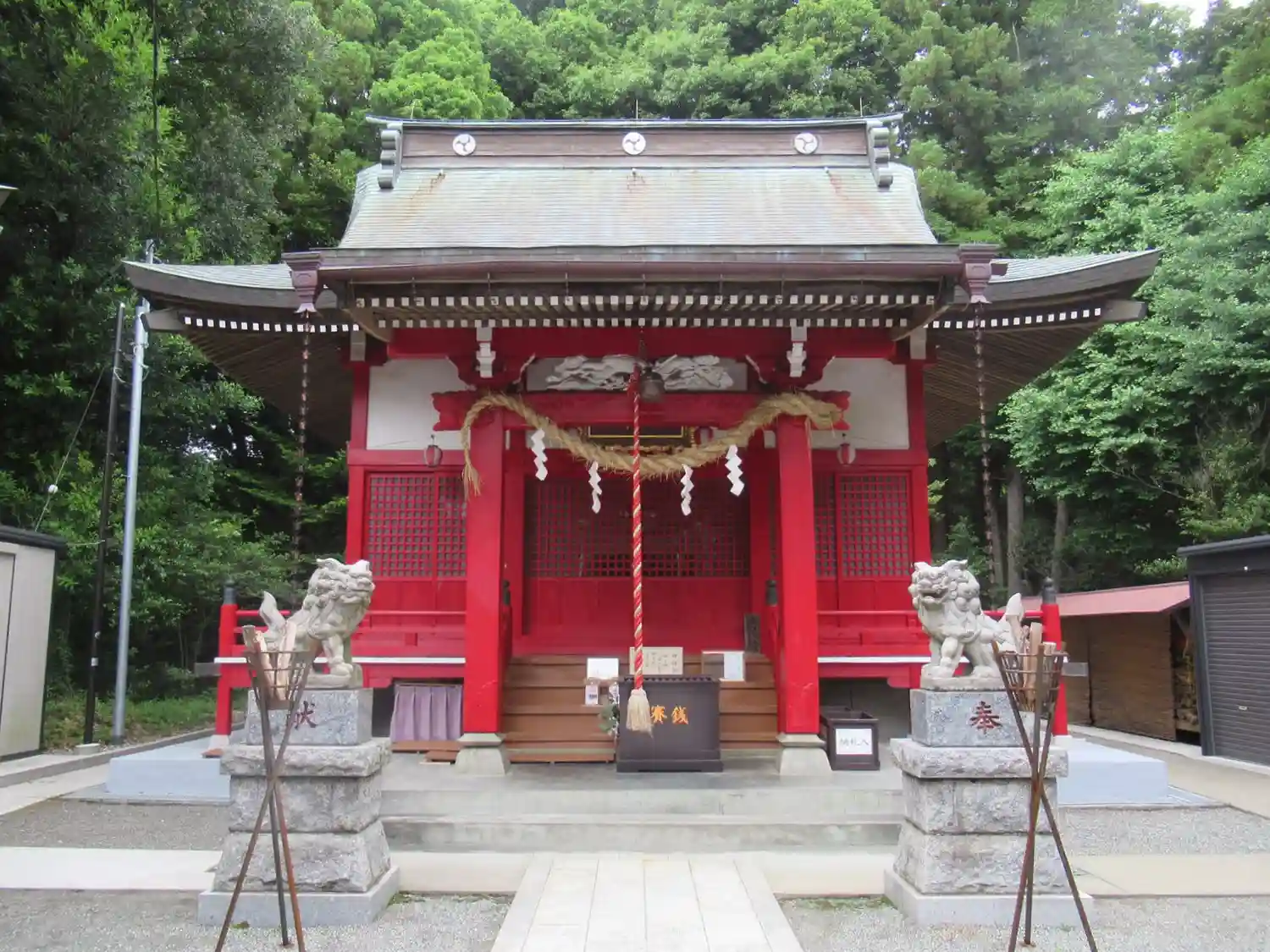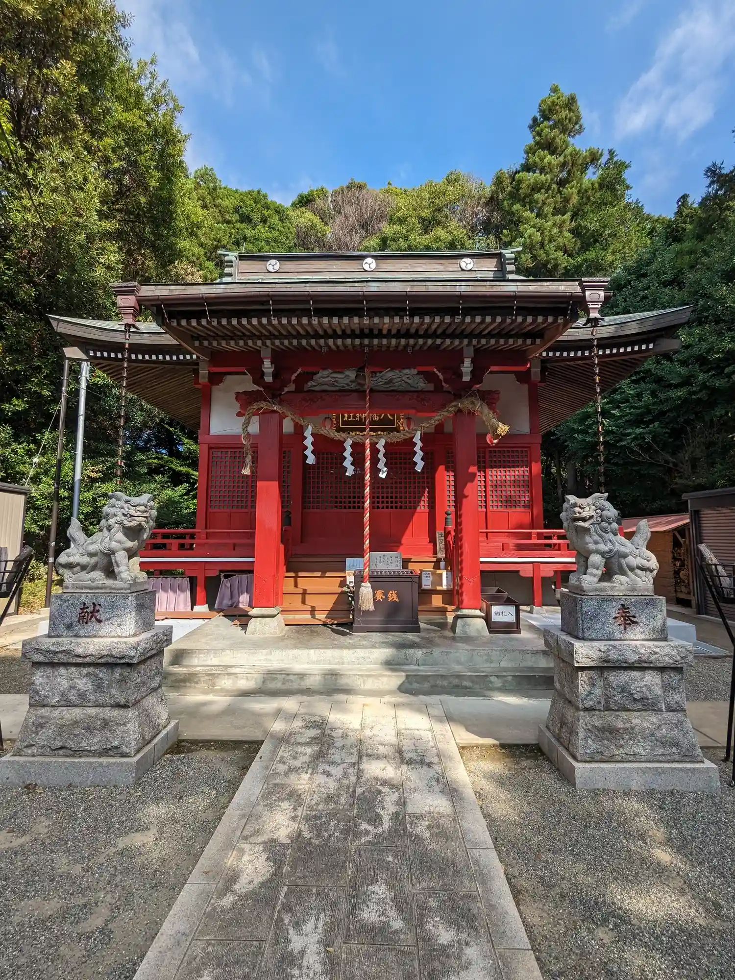 無人の神社ですが朱塗りの建物が鮮やかです。