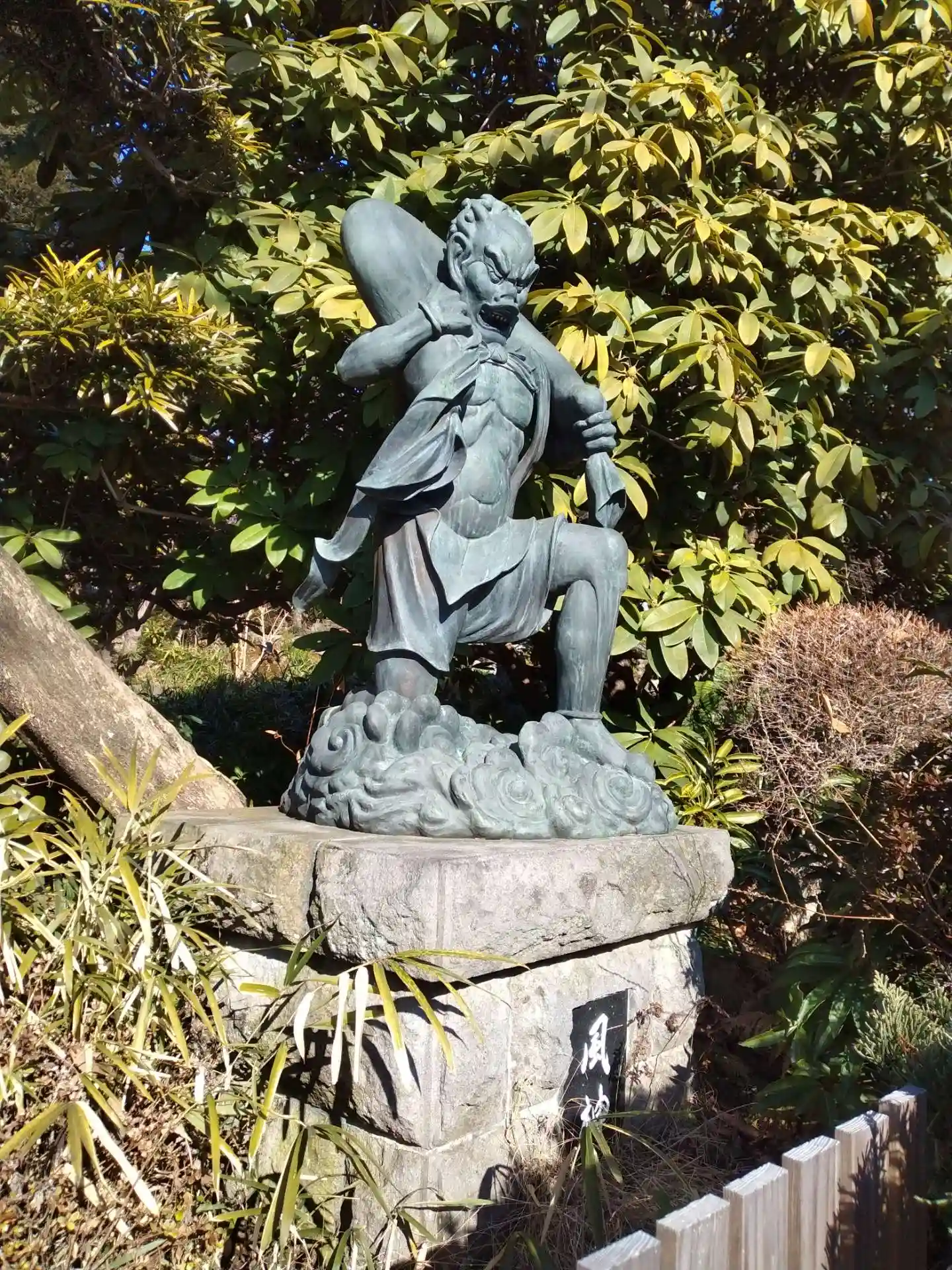 山門前の「風神」像。