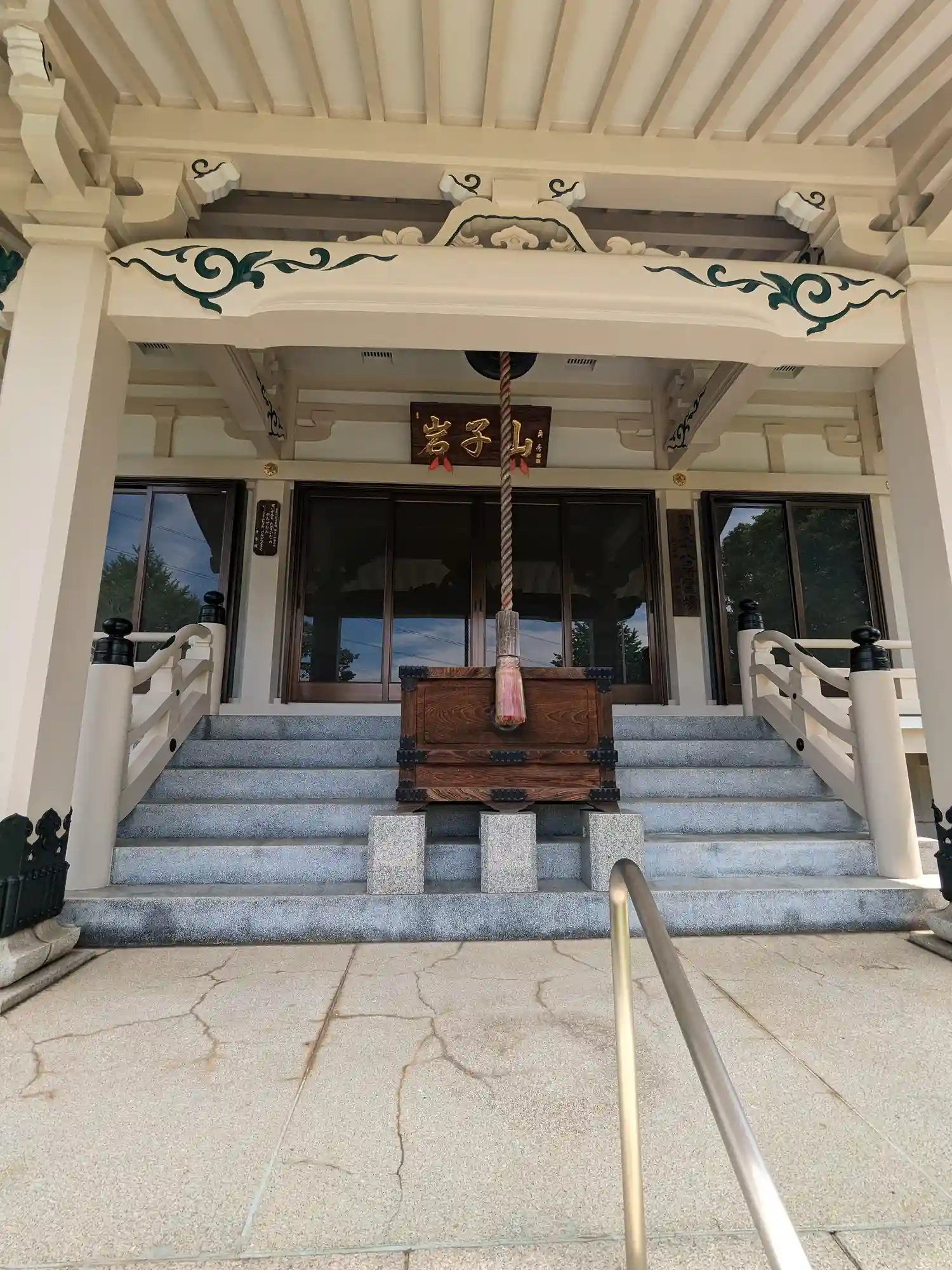 山号の「岩子山」バス停前の真言宗寺…