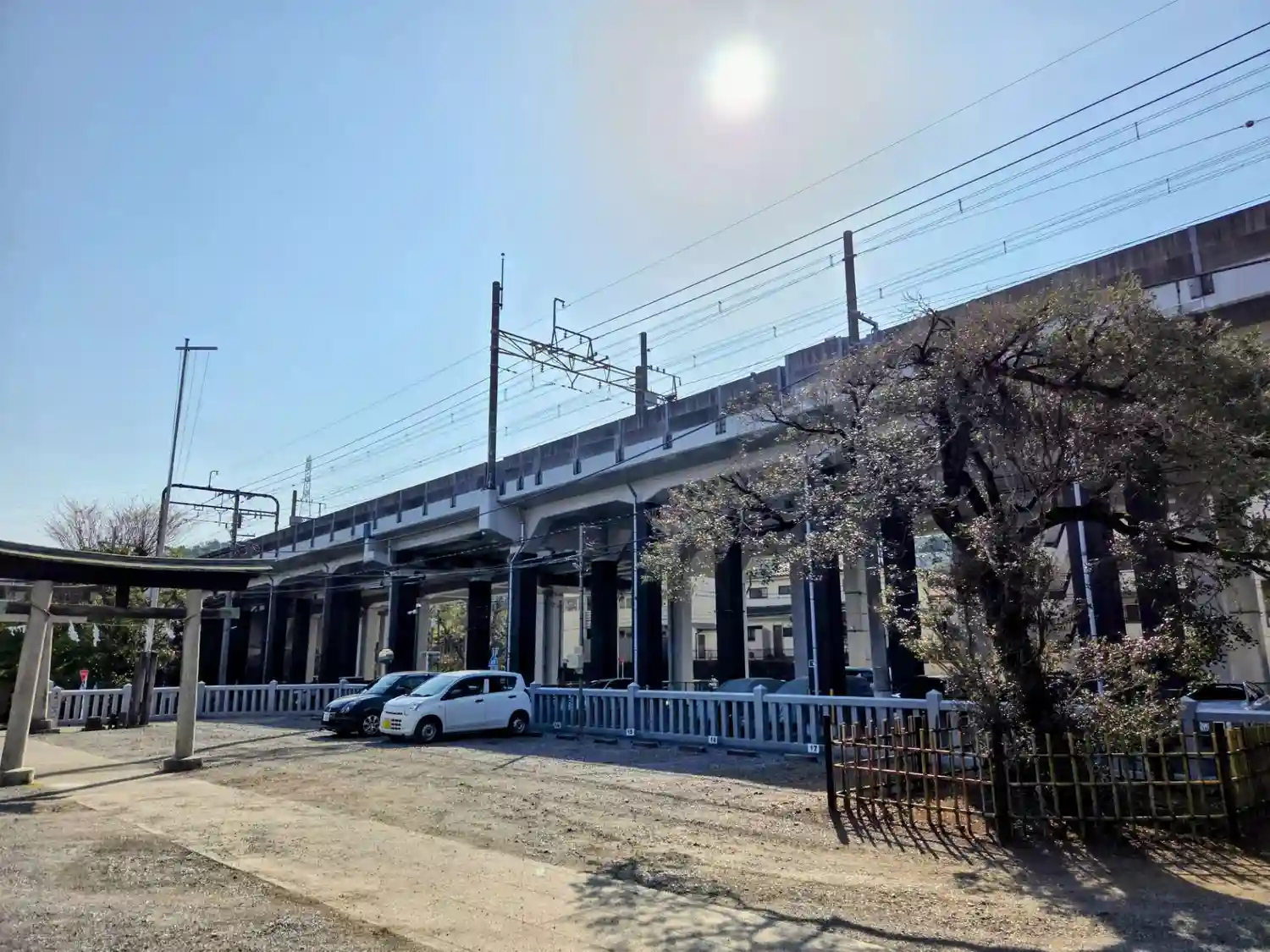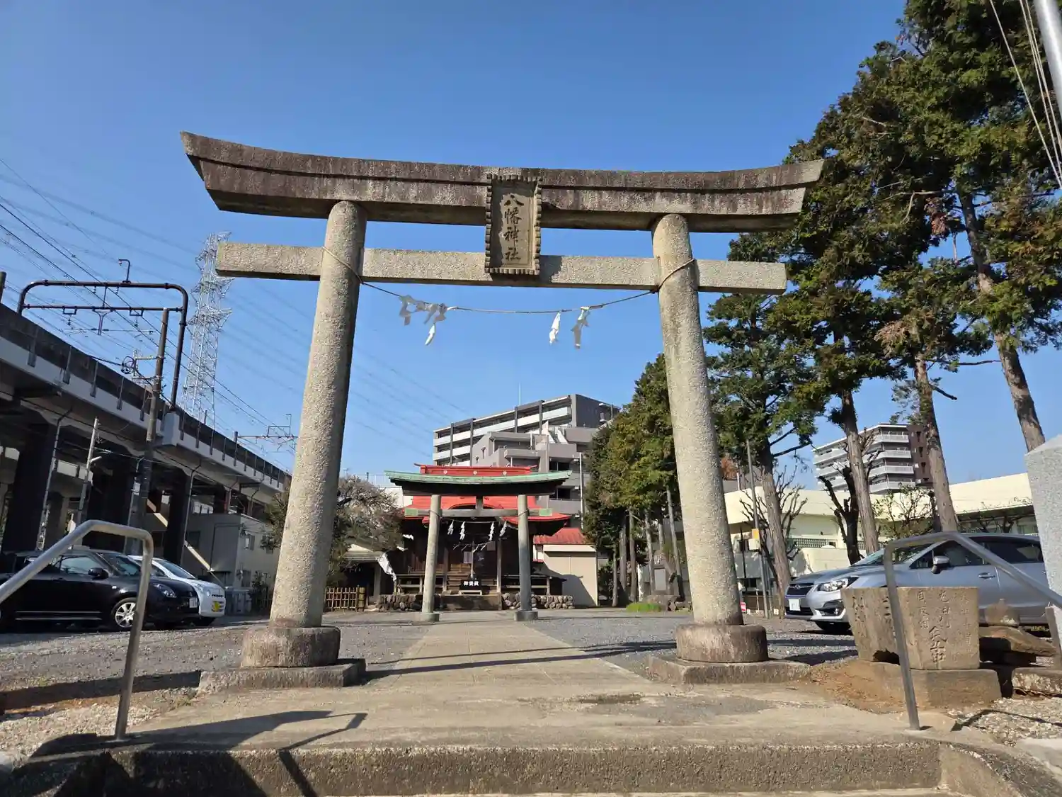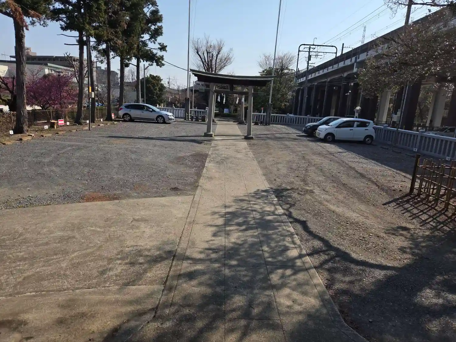 境内入り口に一の鳥居、途中に二の鳥居があります。が、境内の両脇は駐車場となってます。