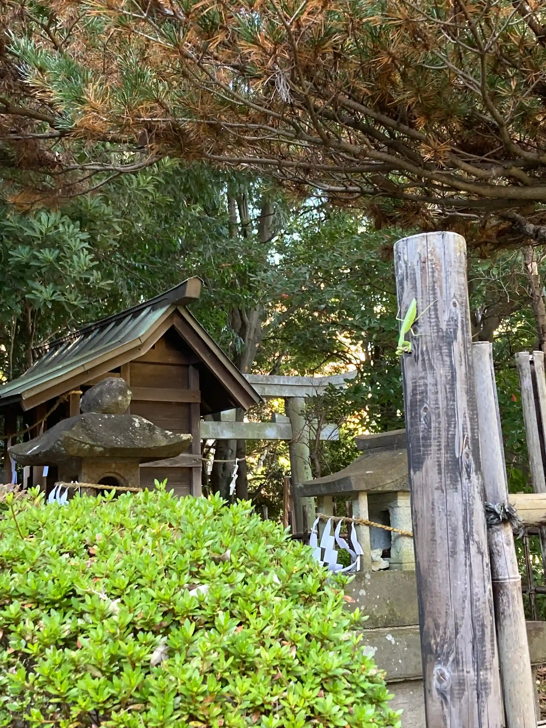 灯籠の裏にヤモさんがペタリ🦎