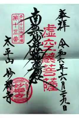 妙櫻寺の御朱印・御朱印帳