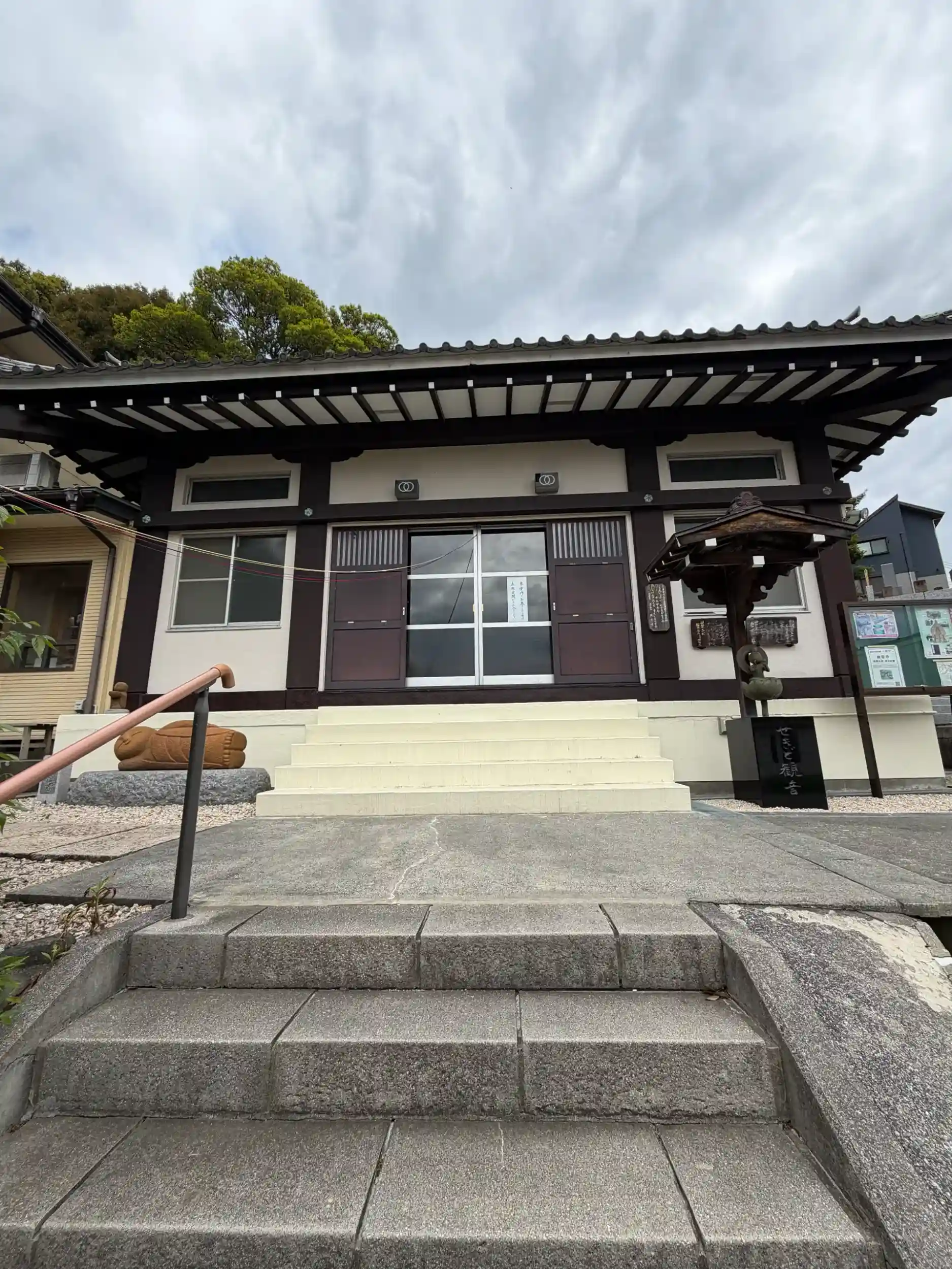 慈眼山 観音寺(かんのんじ, 真言宗 豊山派, 創建年代不詳) 本堂, 本尊は聖観世音菩薩, 通称 関戸観音, 多摩川三十四観音霊場12番札所, 多摩八十八ヶ所霊場16番札所