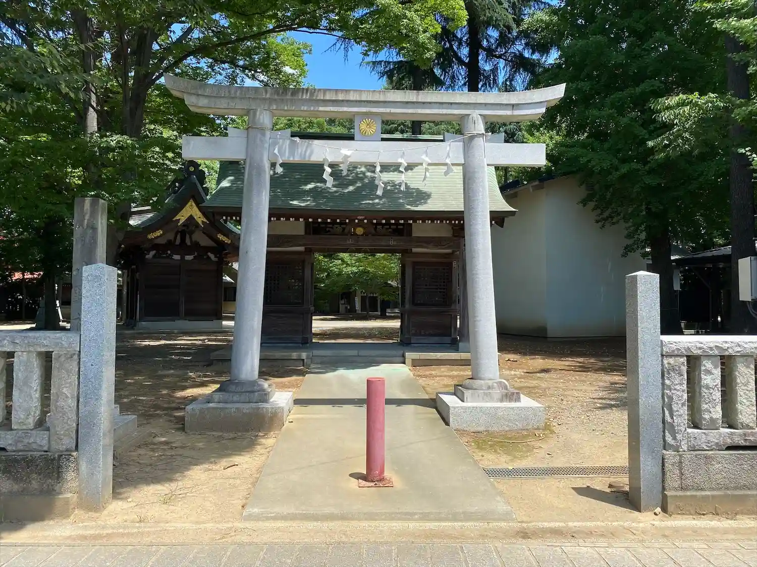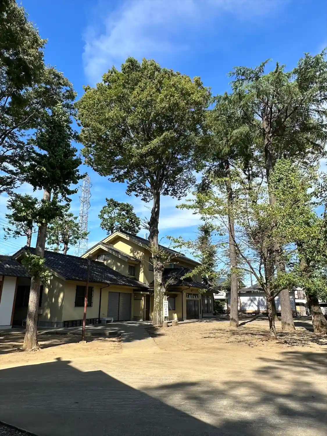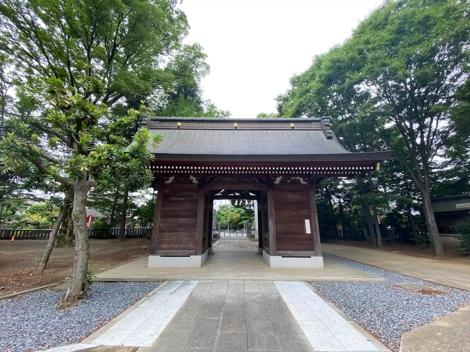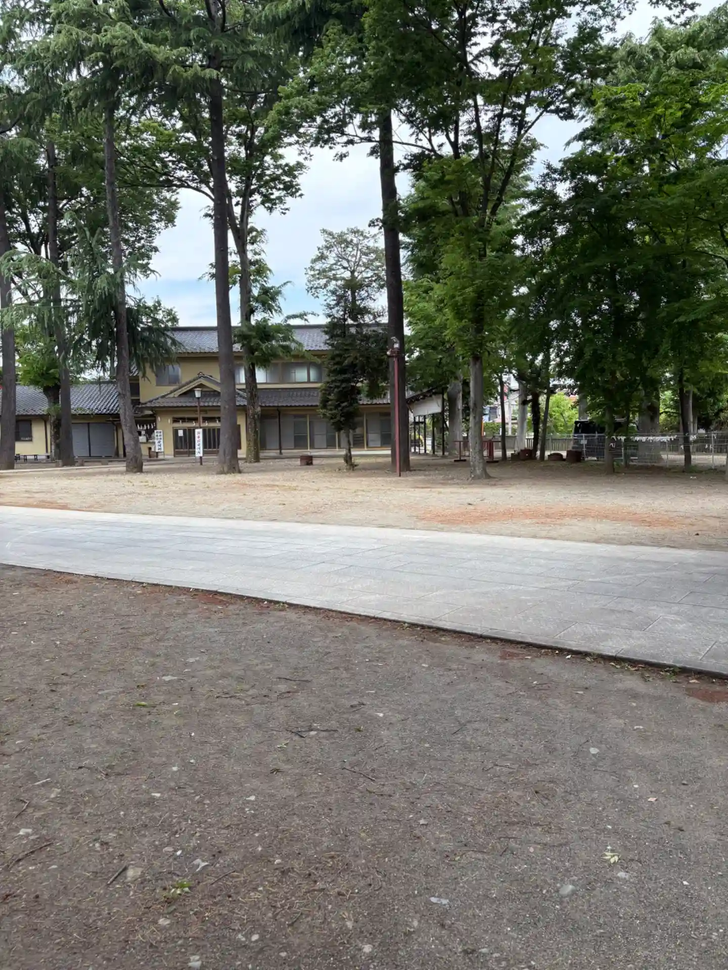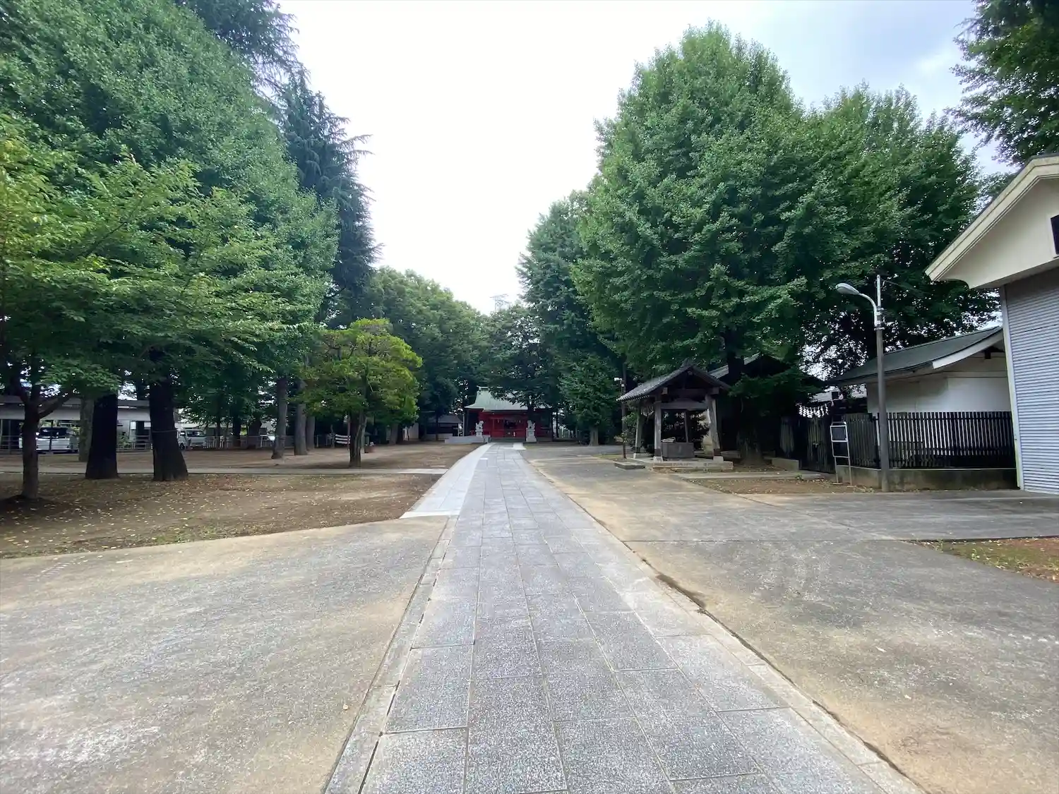 高木に取り囲まれ、掃除の行き届いた広々とした境内
