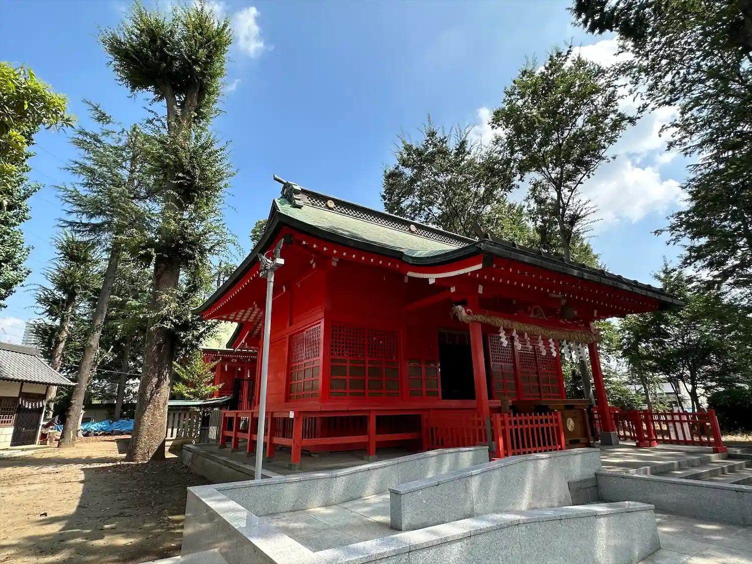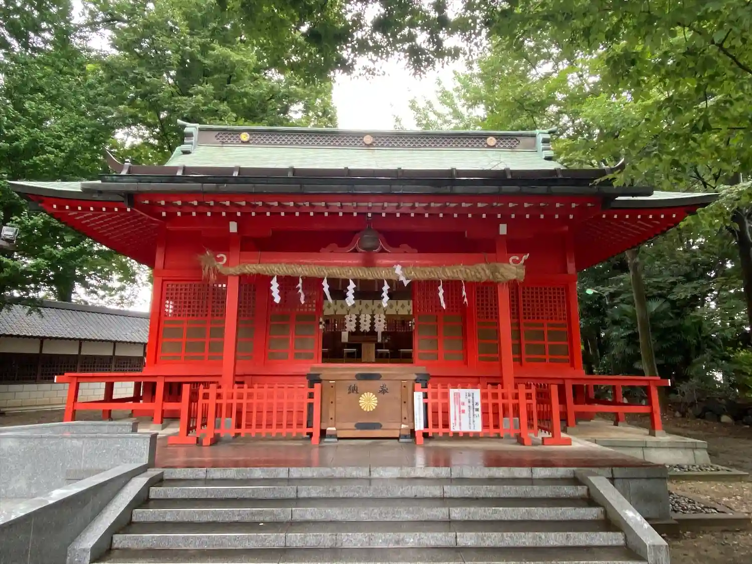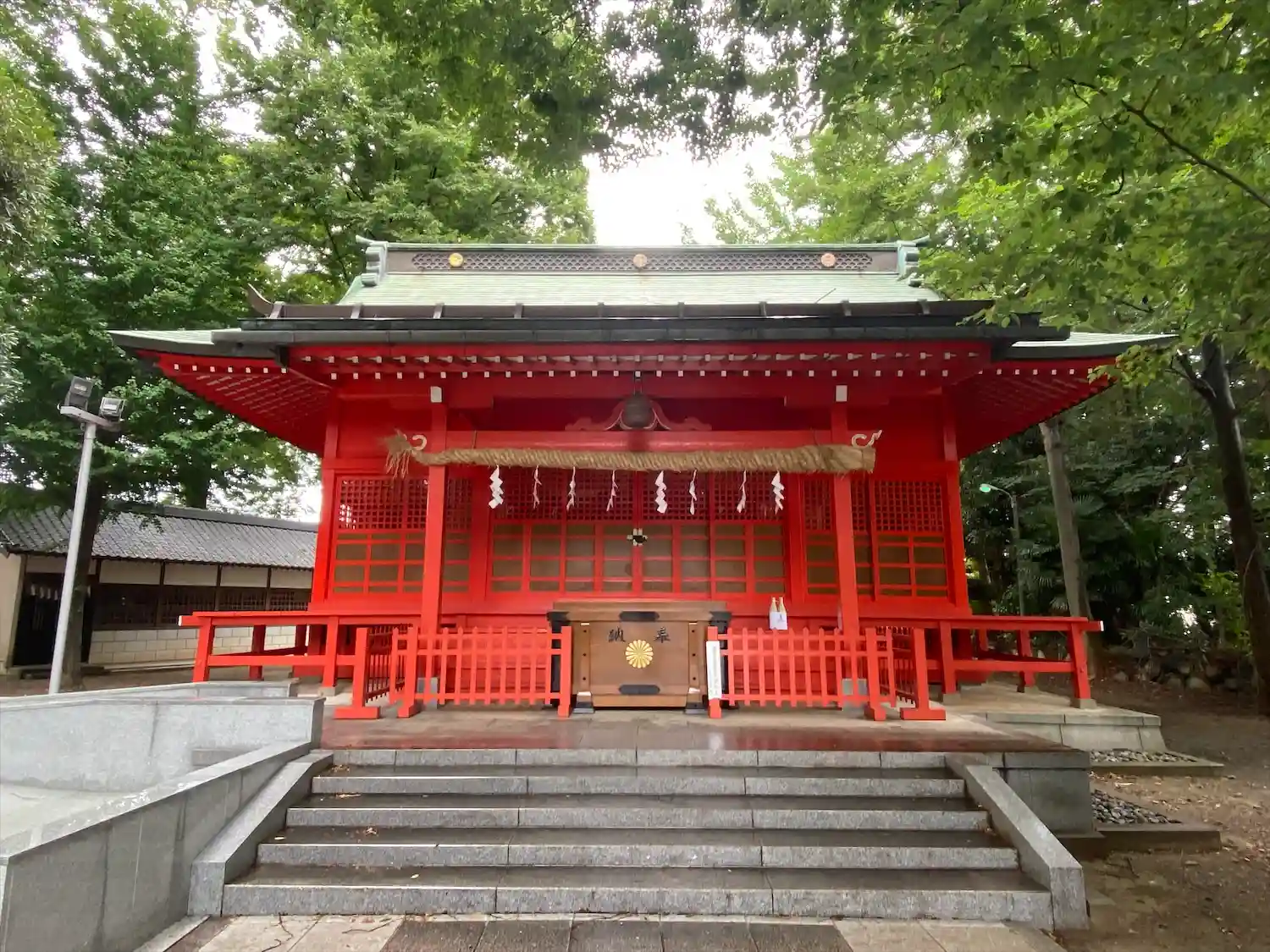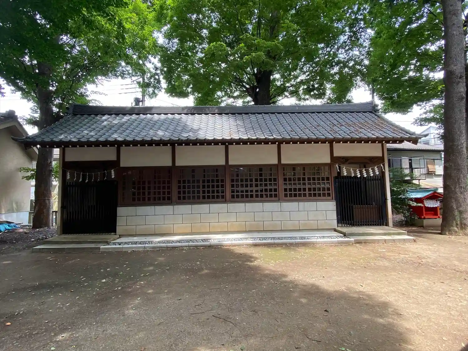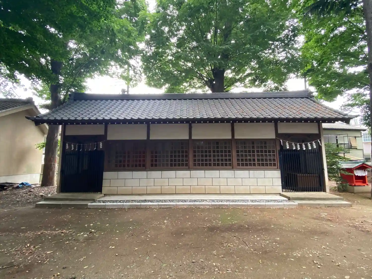高木に取り囲まれ、掃除の行き届いた広々とした境内
