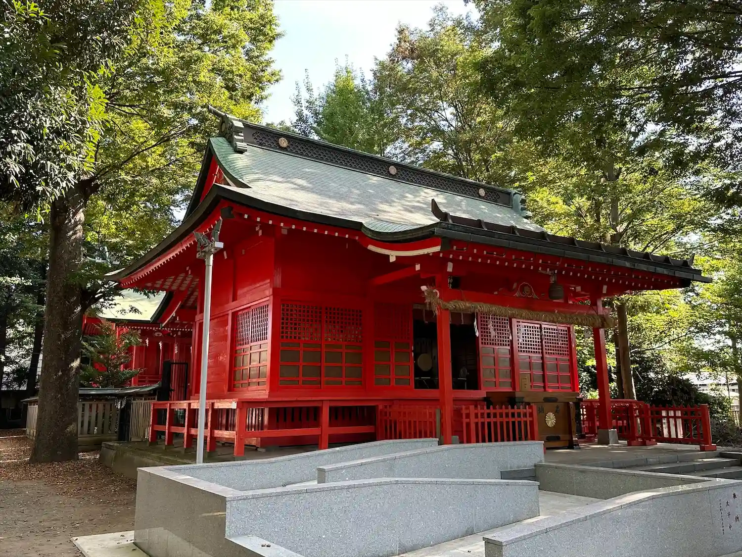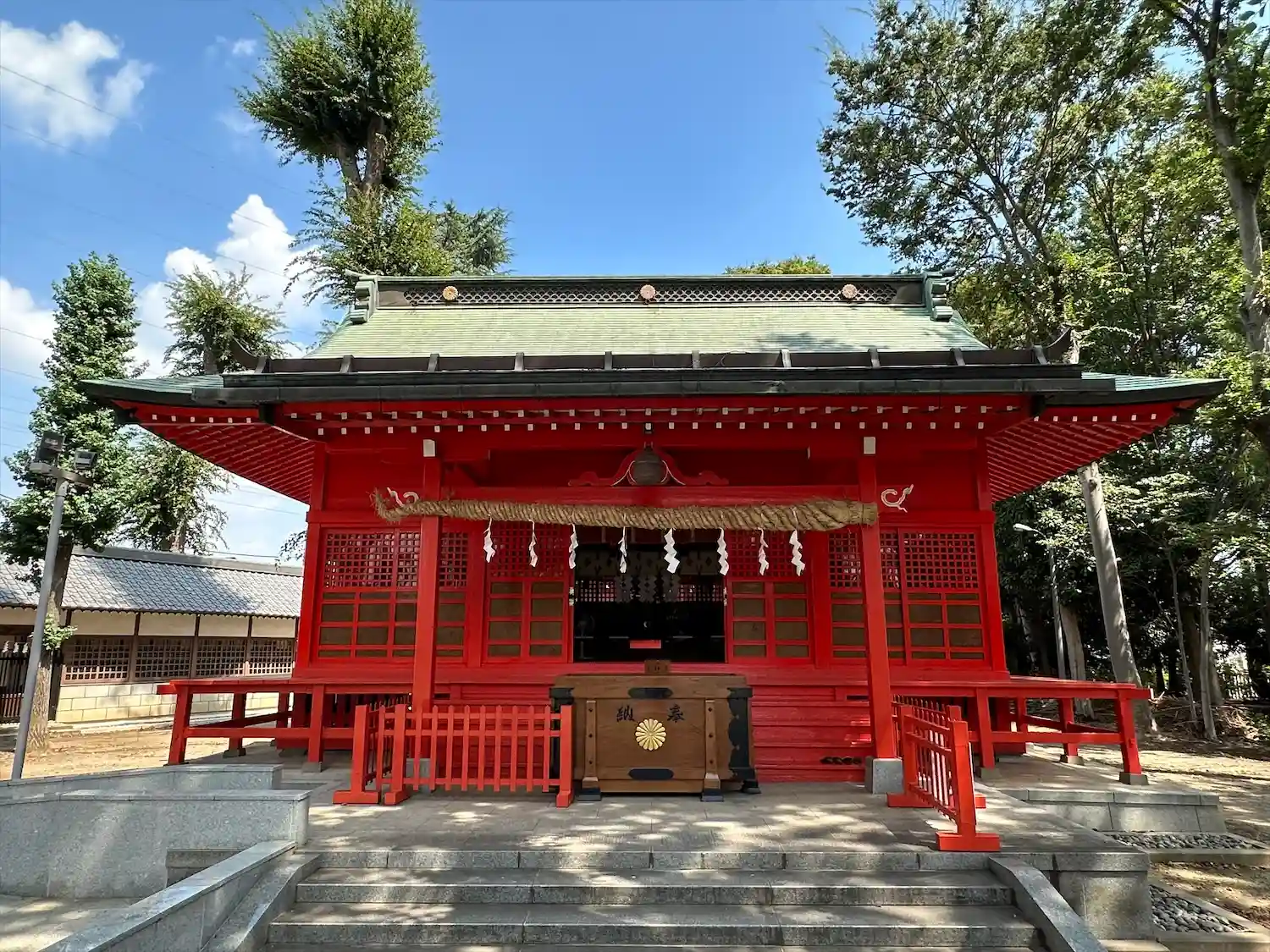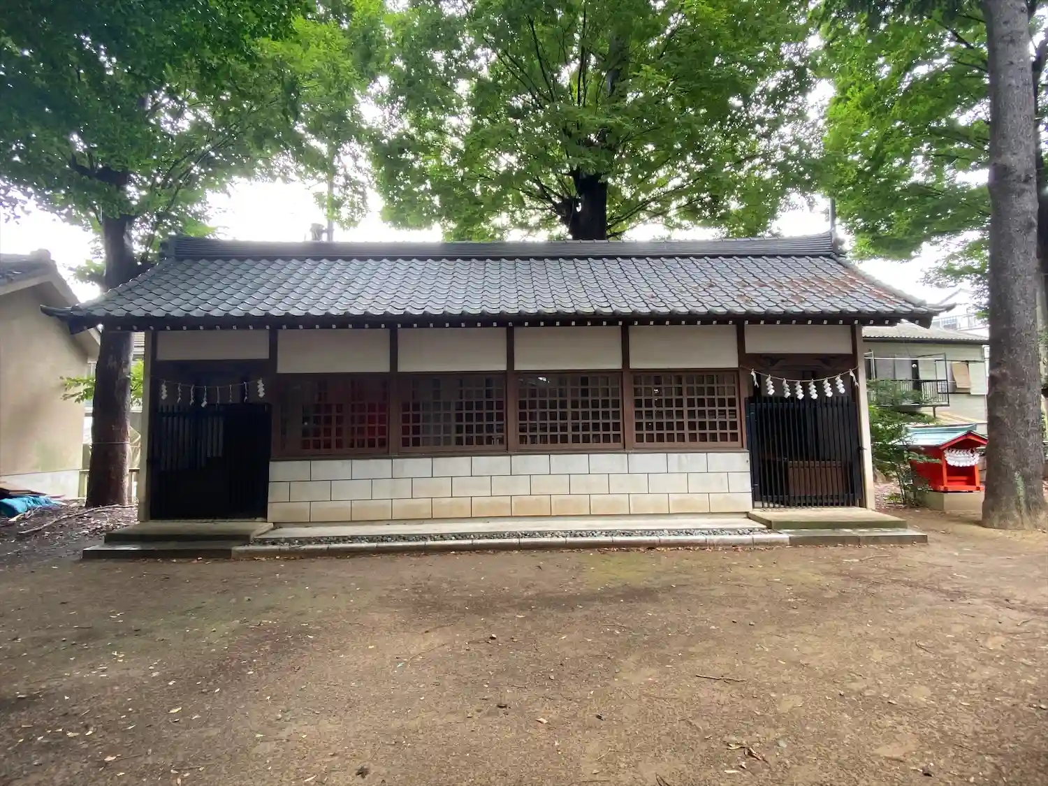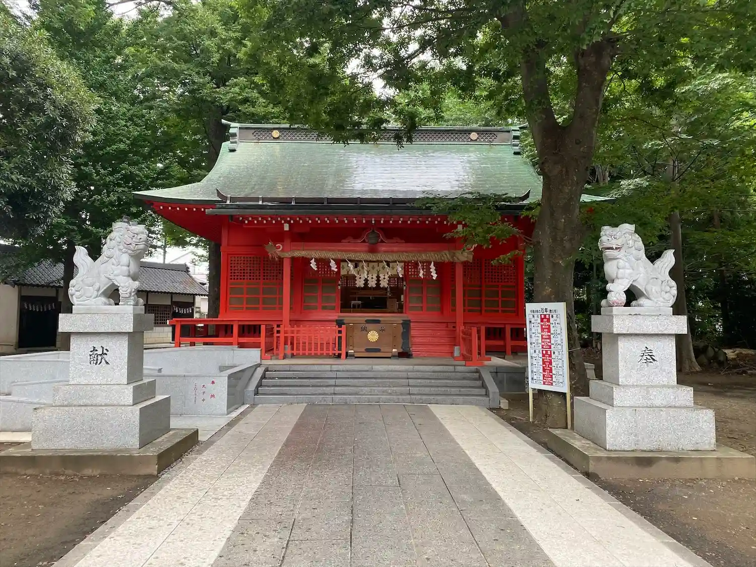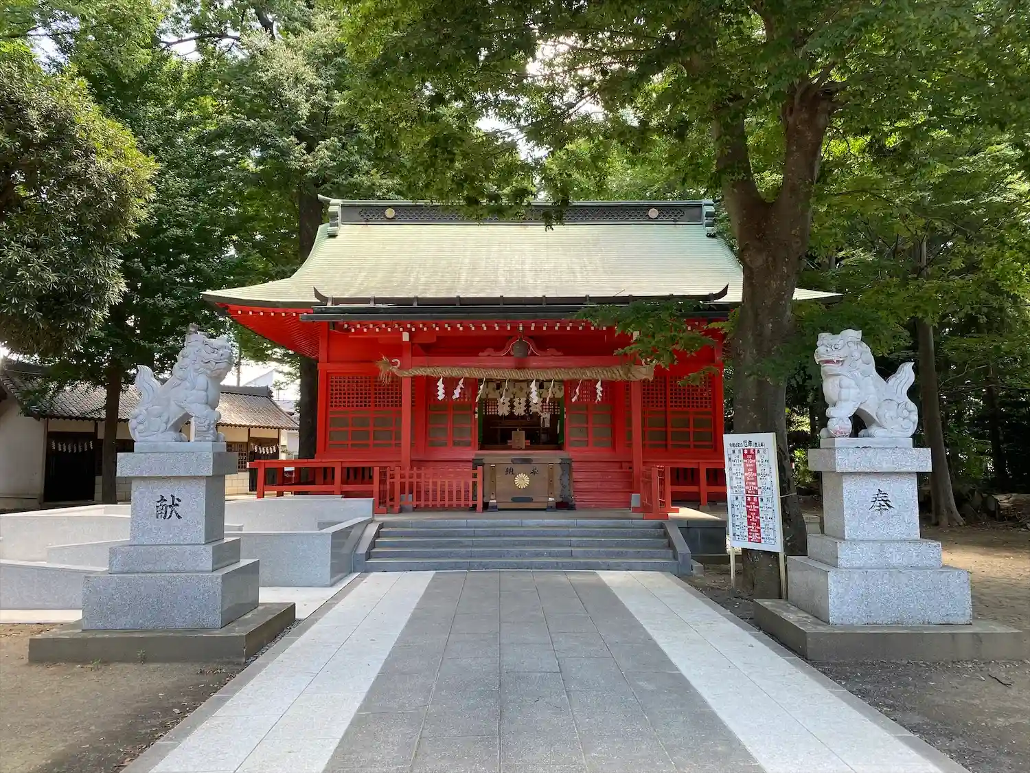 高木に取り囲まれ、掃除の行き届いた広々とした境内