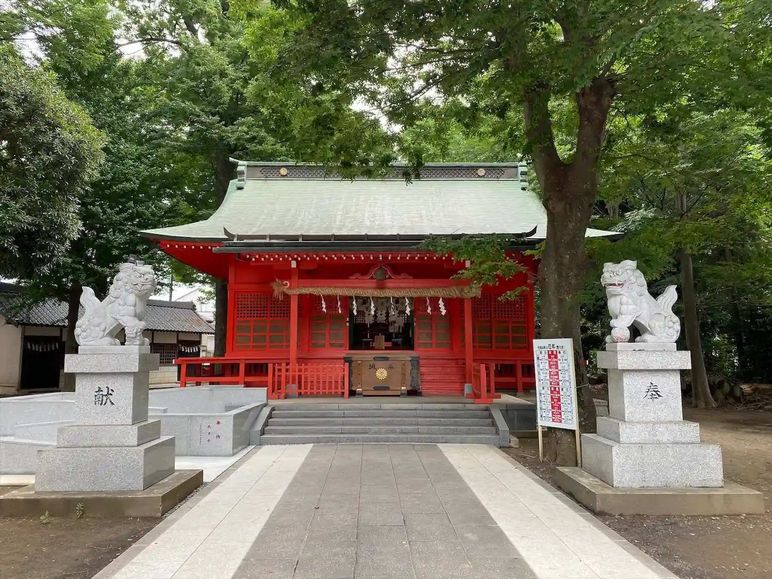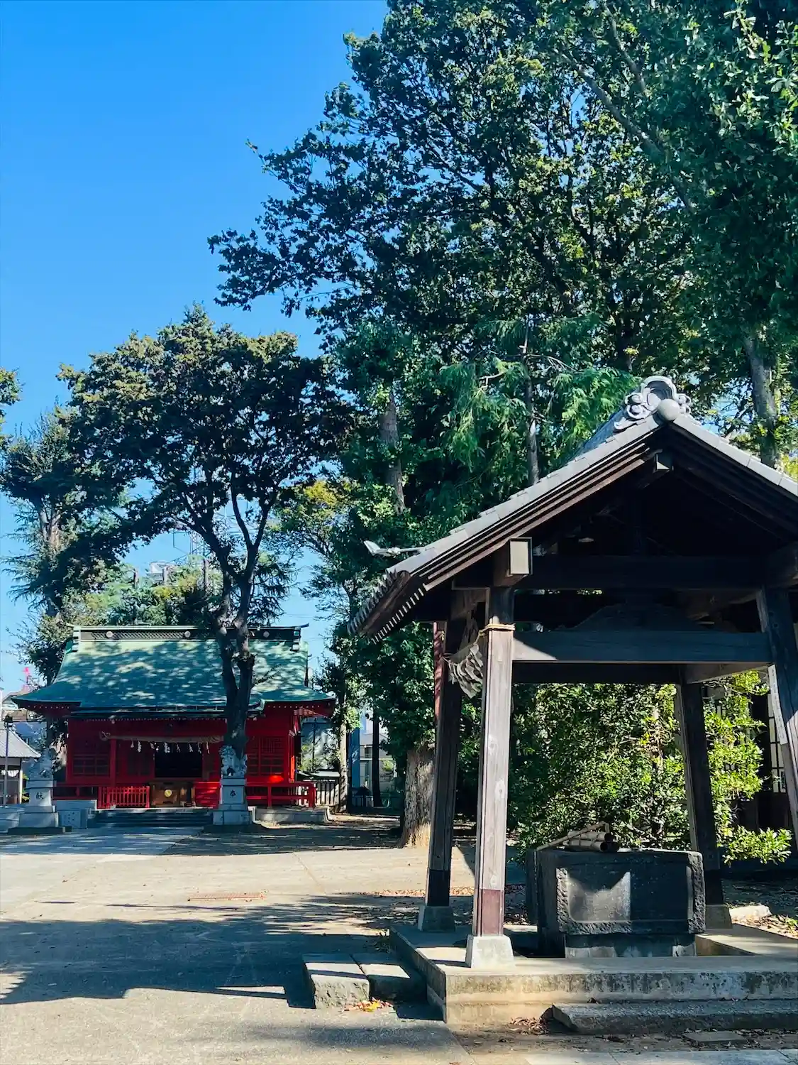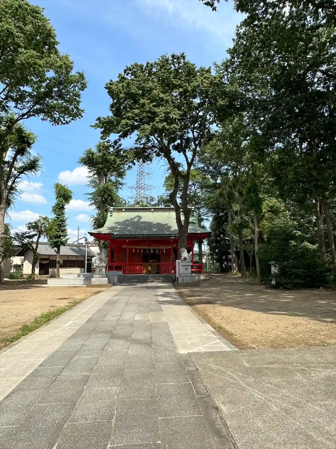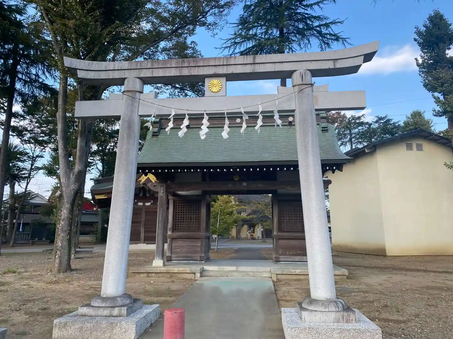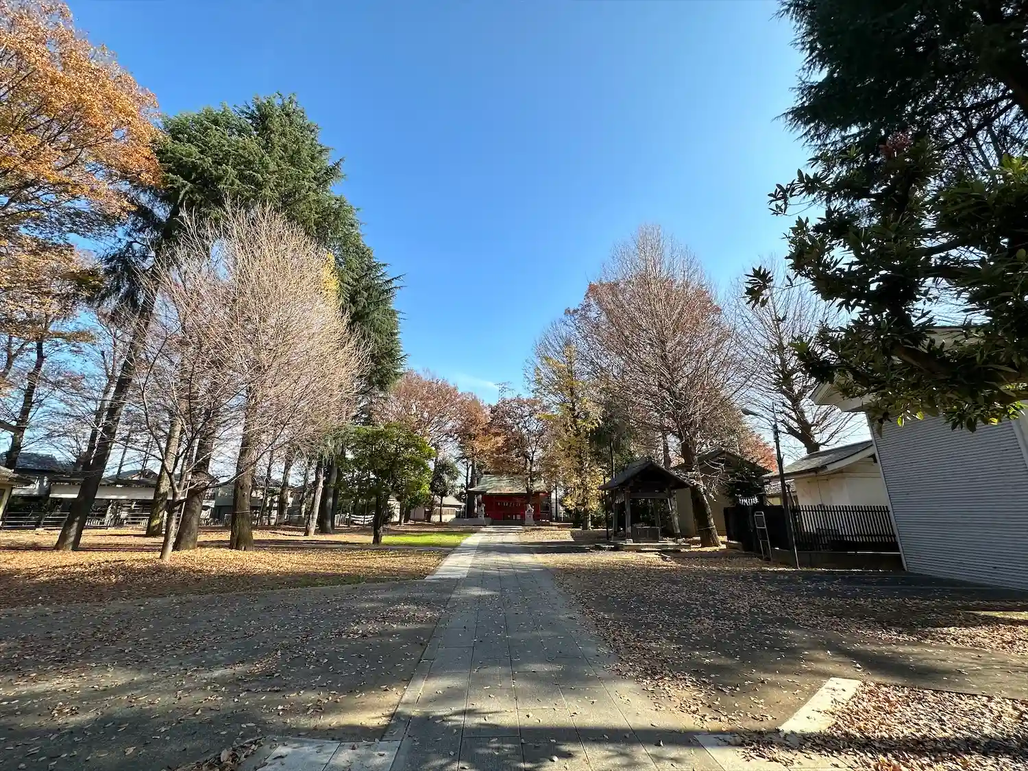 高木に取り囲まれ、掃除の行き届いた広々とした境内