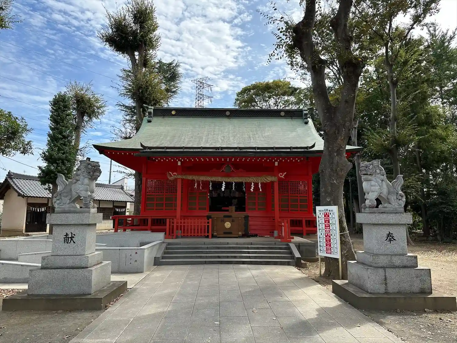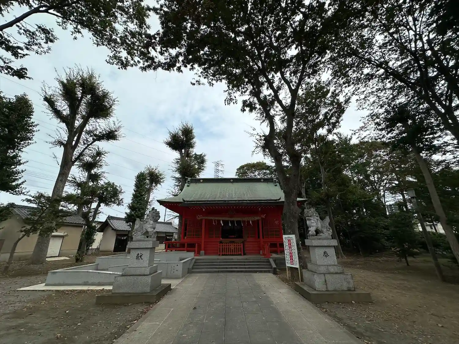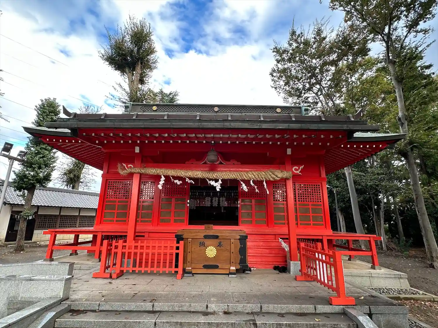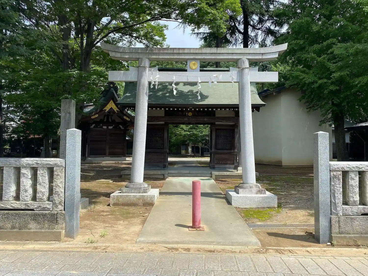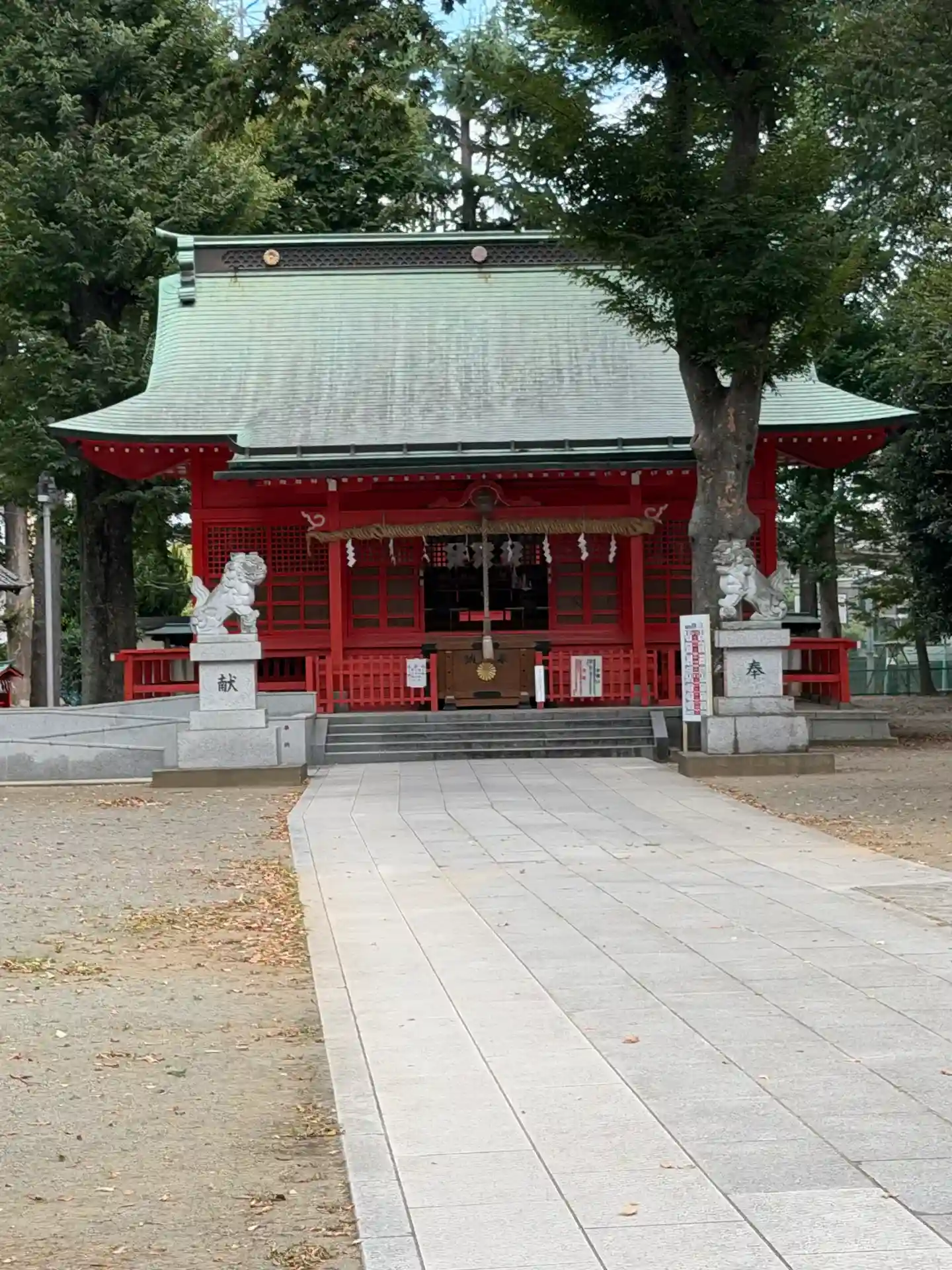高木に取り囲まれ、掃除の行き届いた広々とした境内