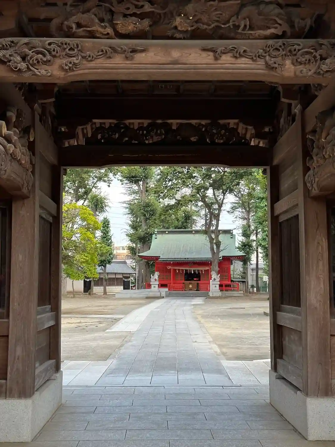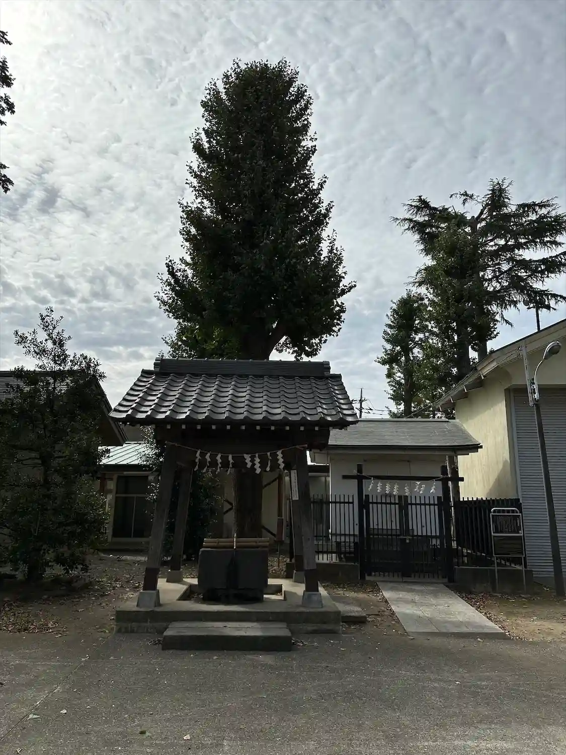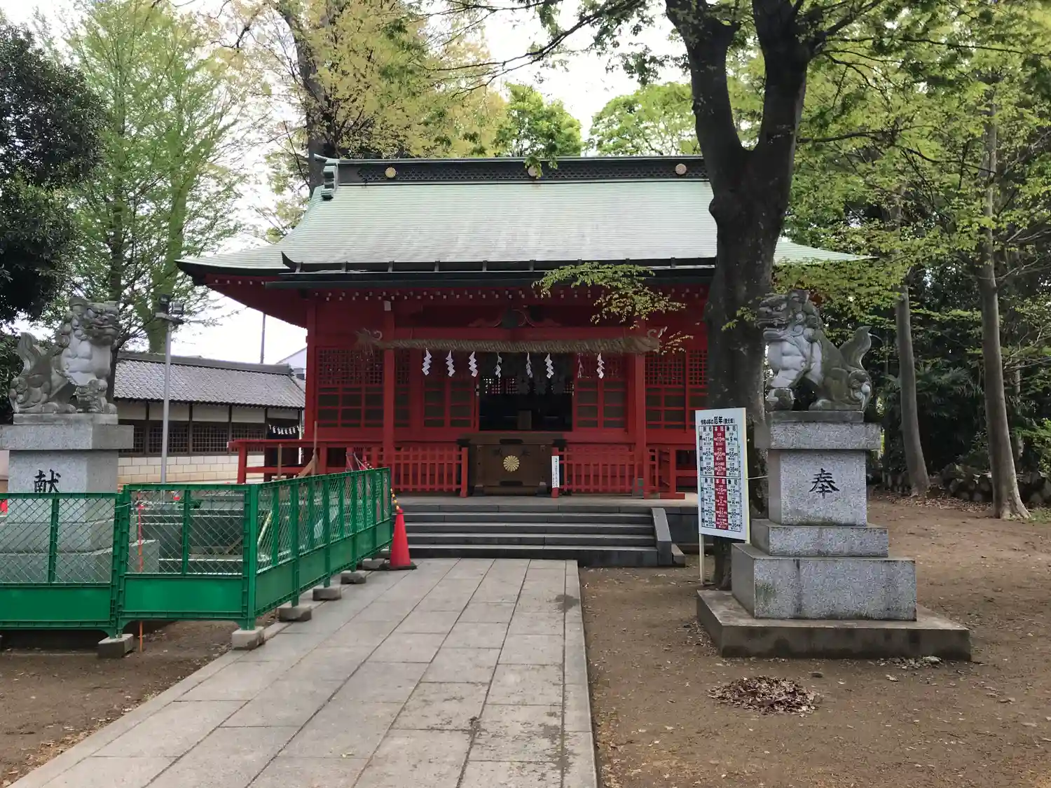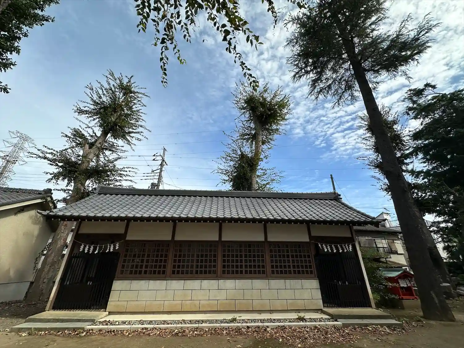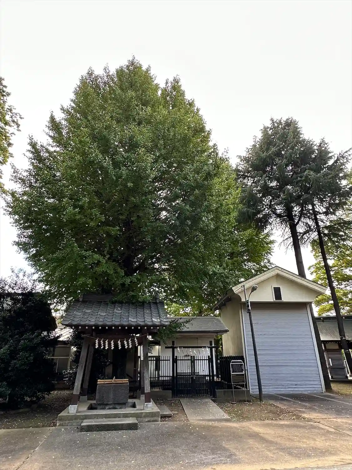 高木に取り囲まれ、掃除の行き届いた広々とした境内