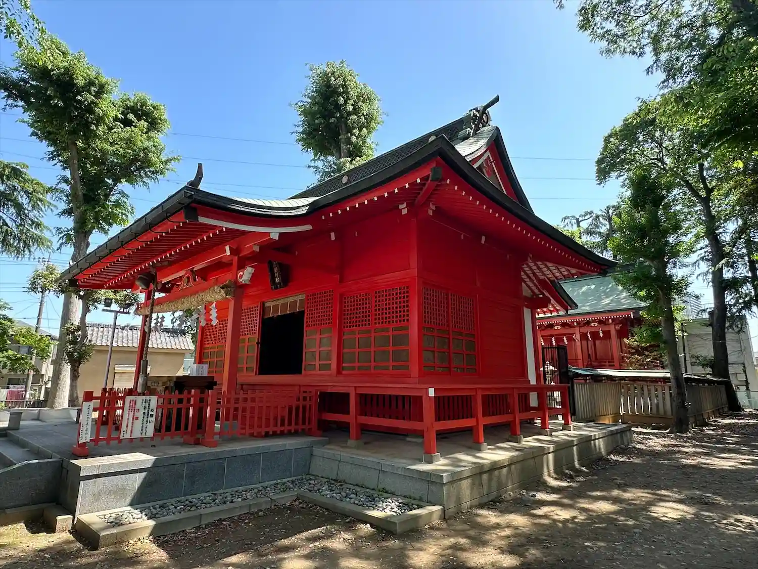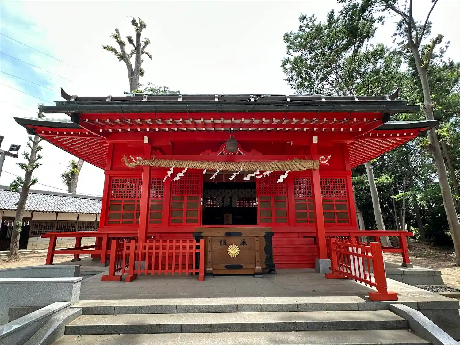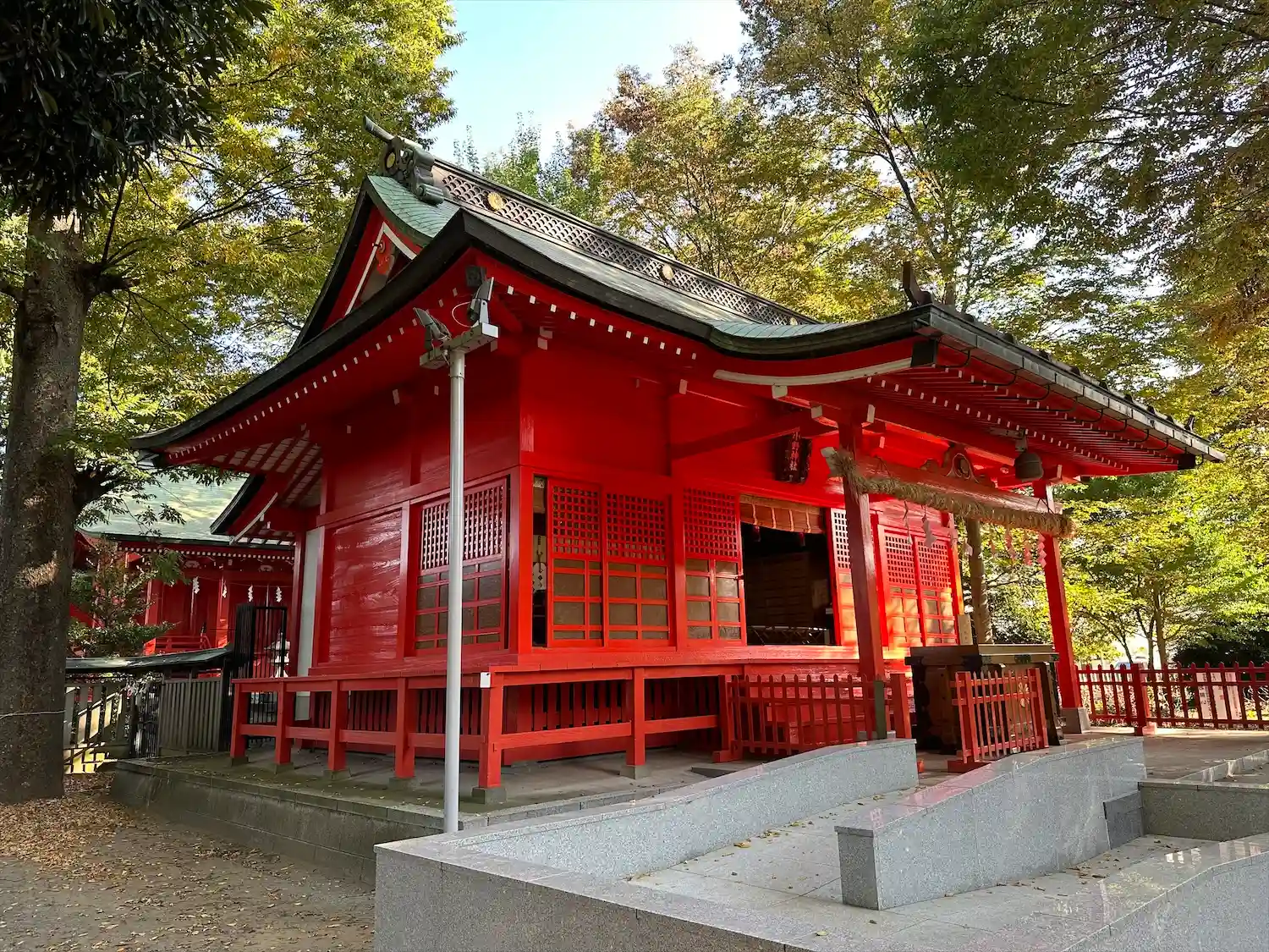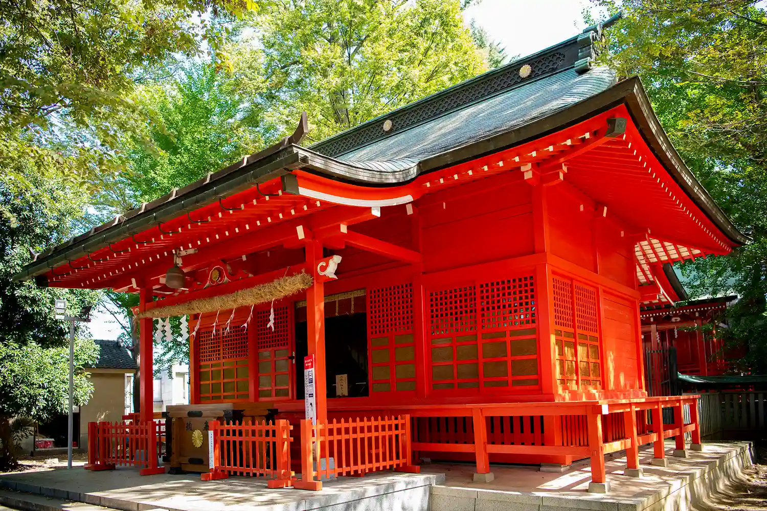 朱塗りの拝殿