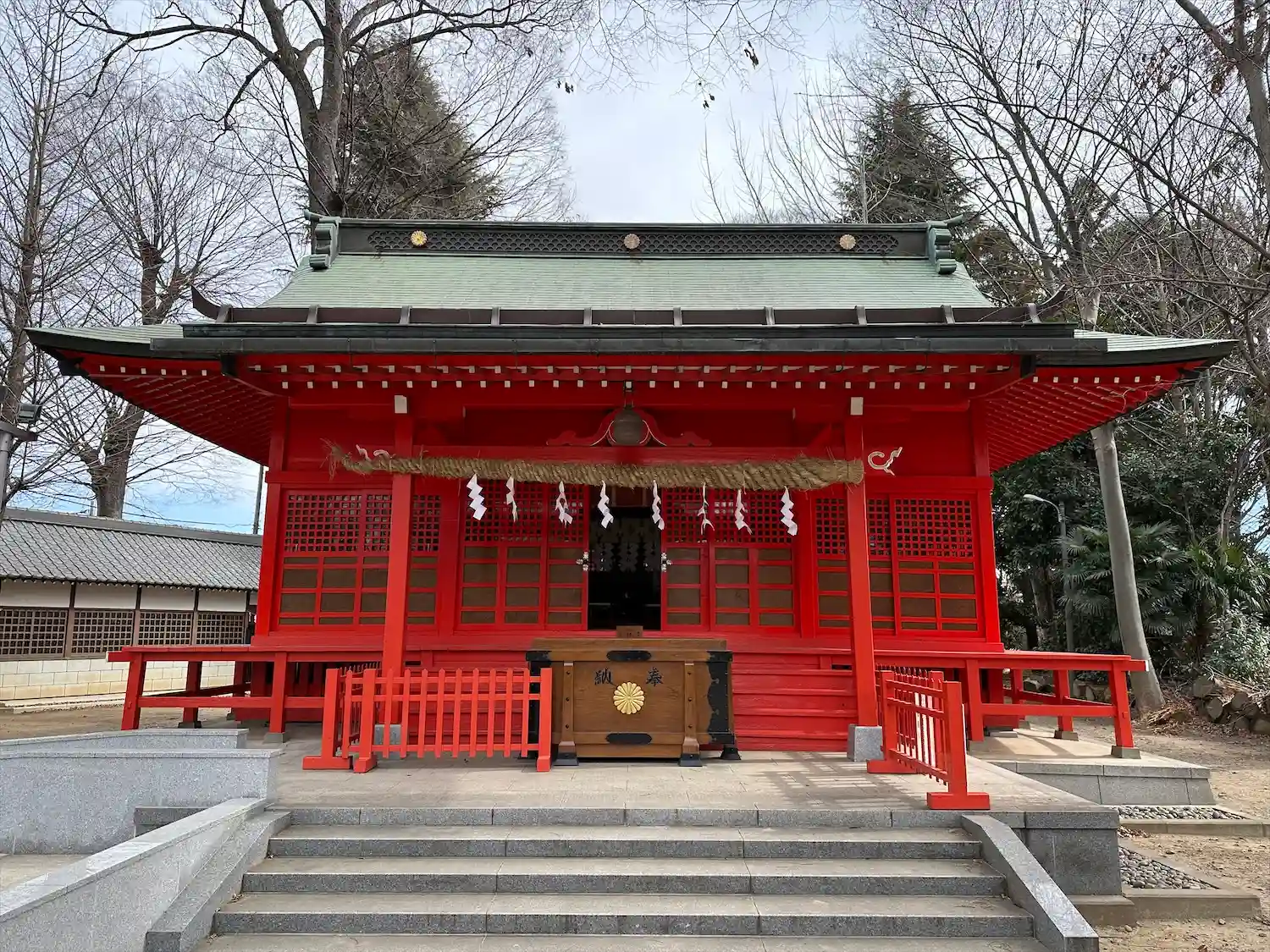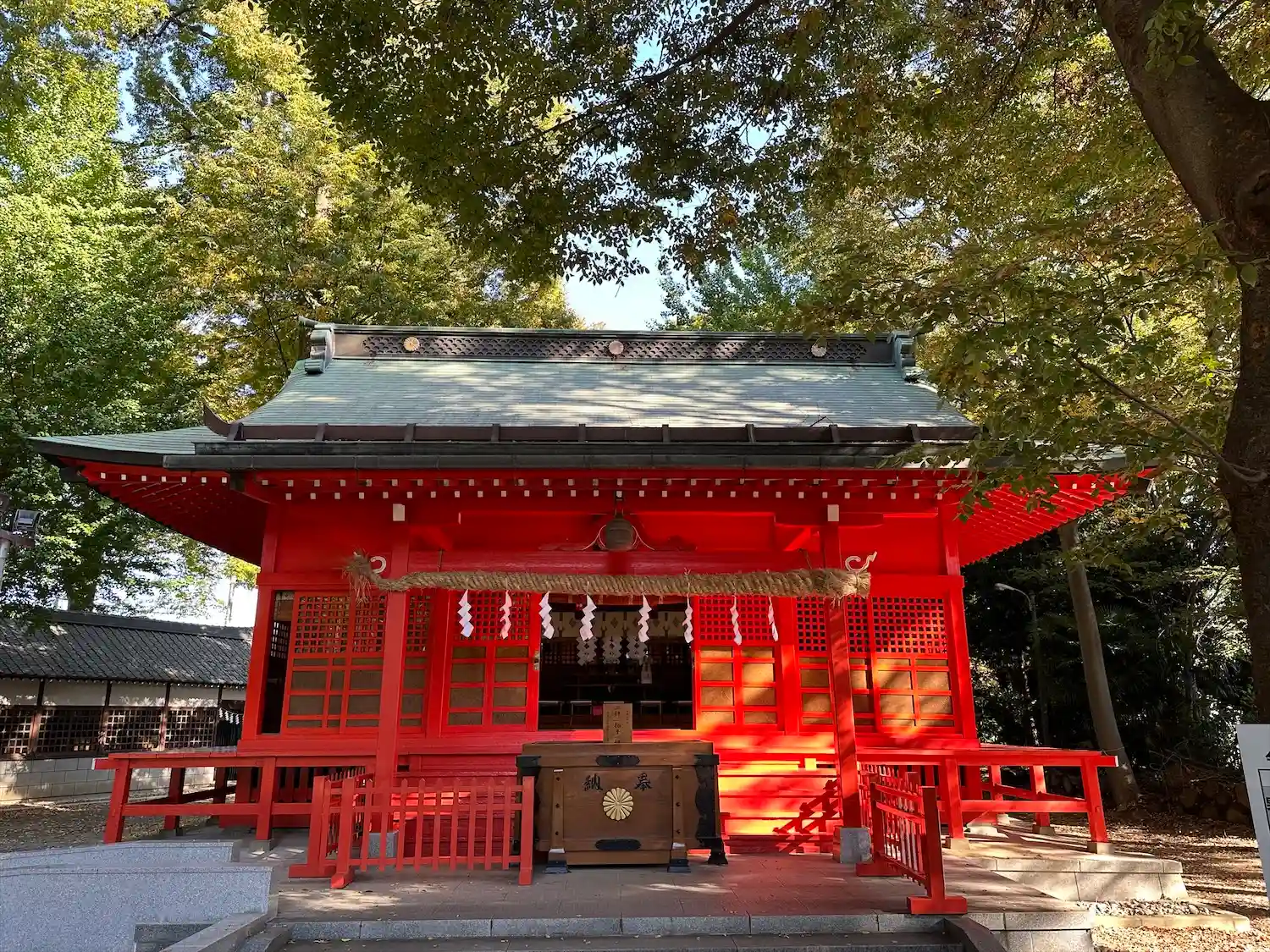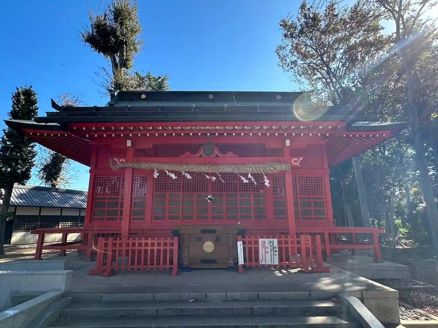 朱塗りの拝殿