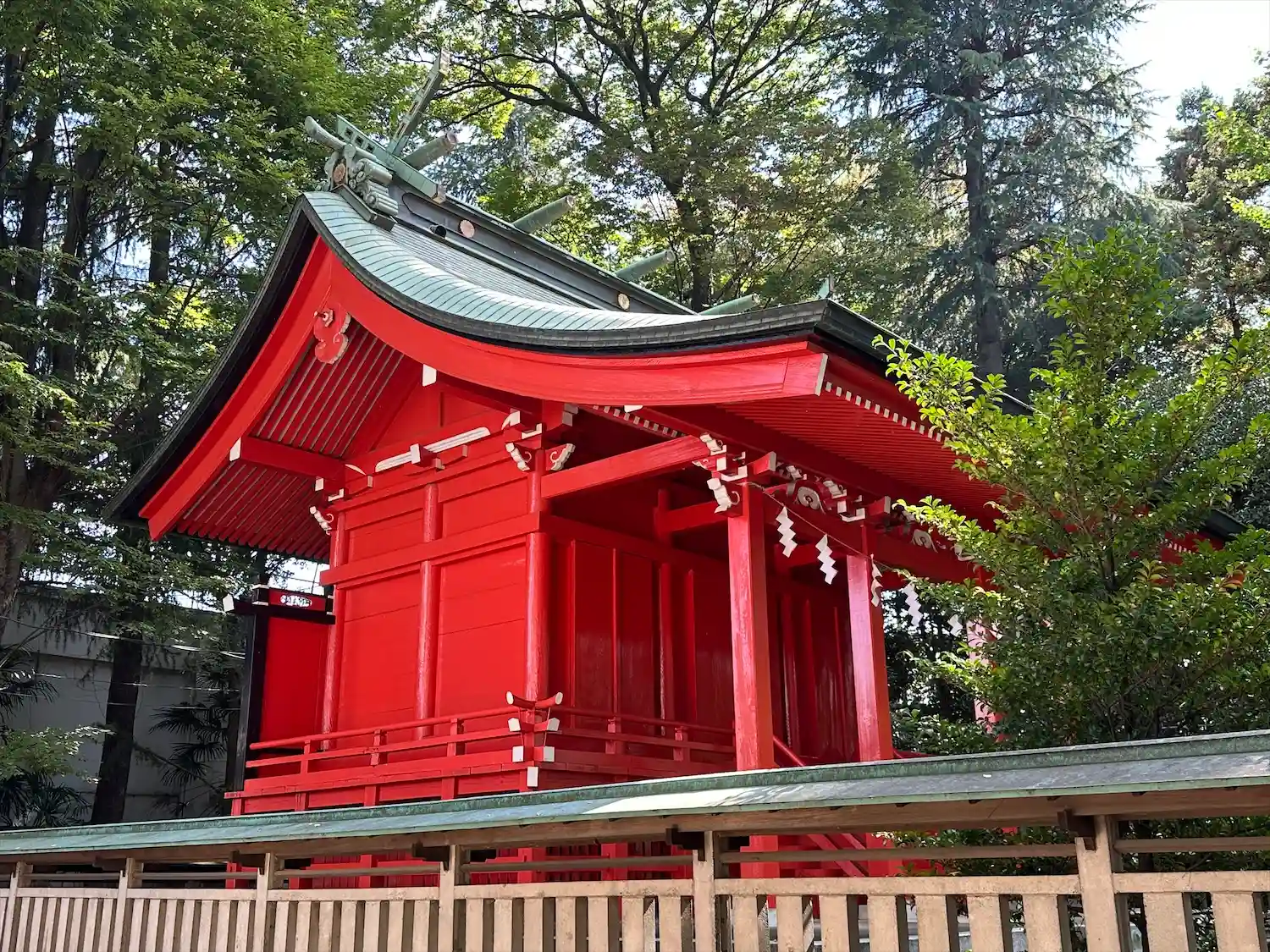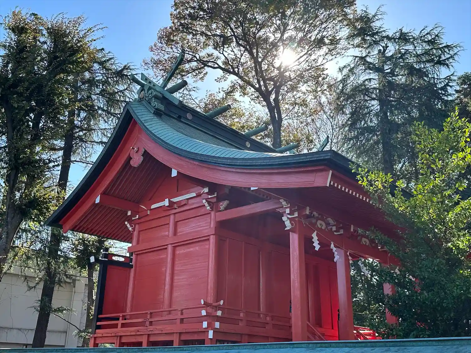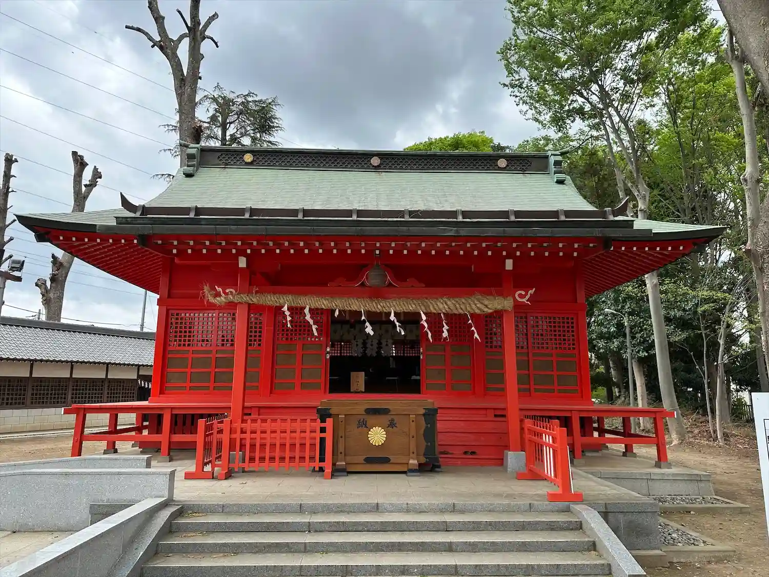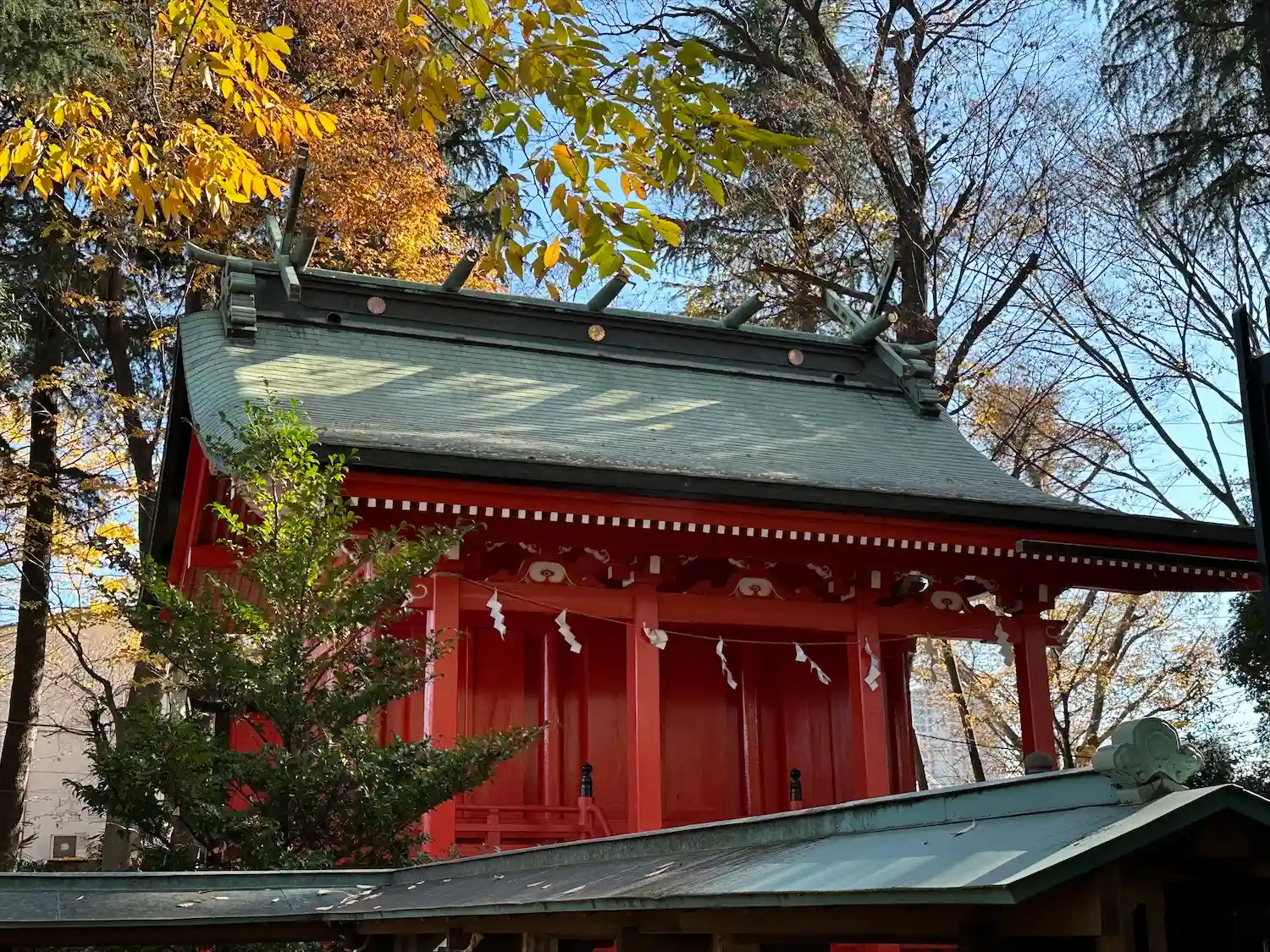 朱塗りの拝殿