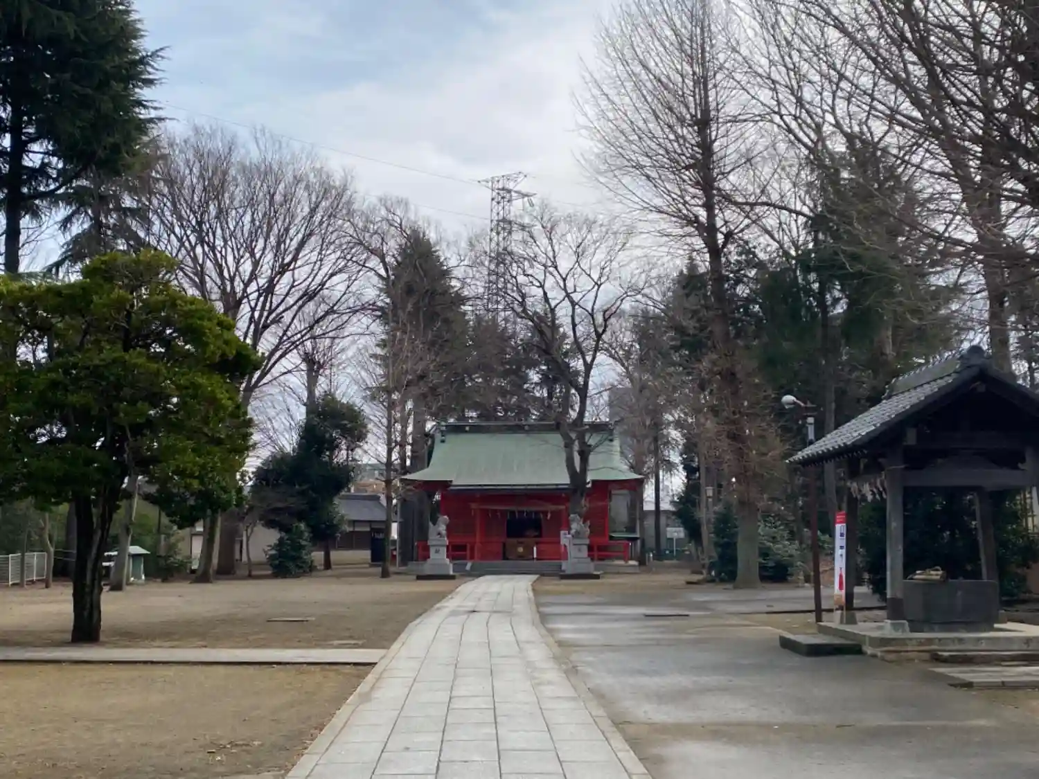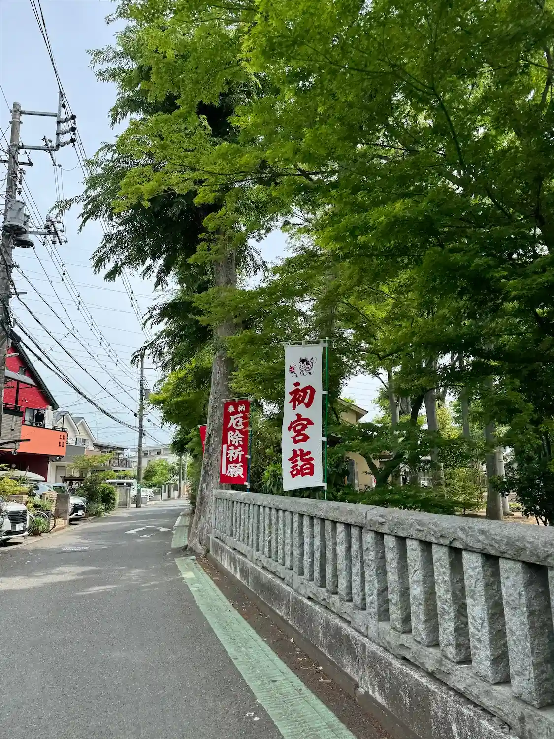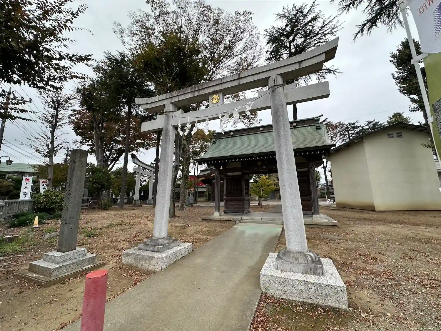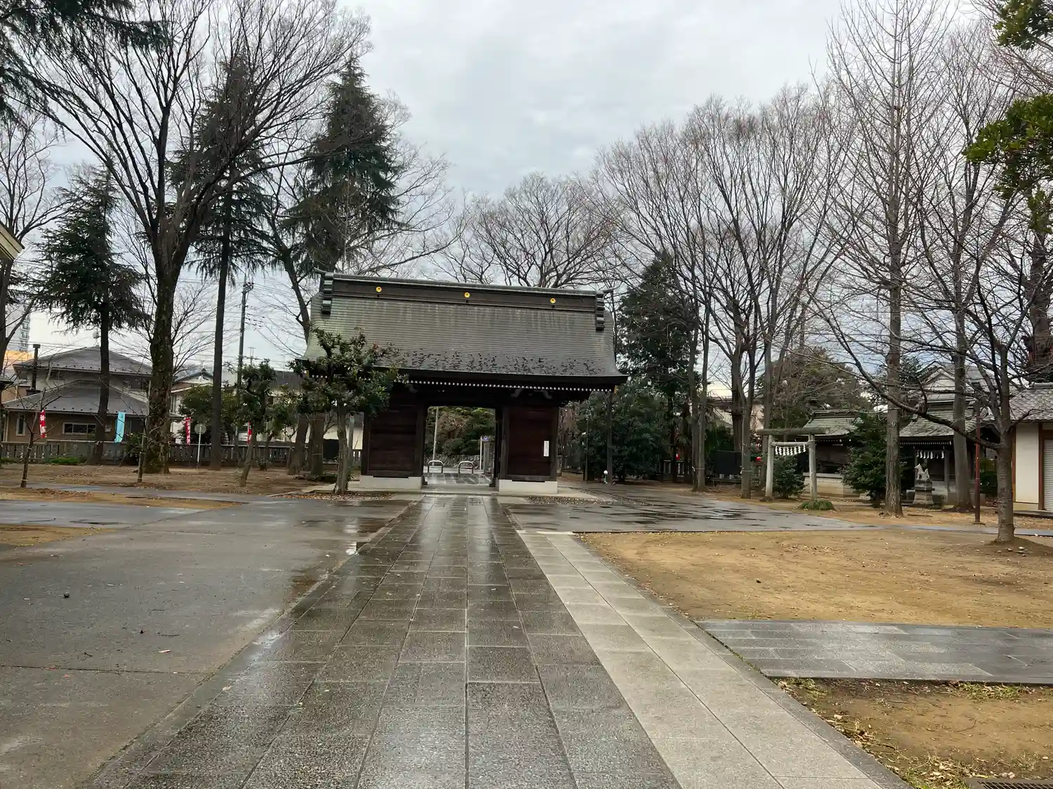 住宅街の中に広い神社が現れます。