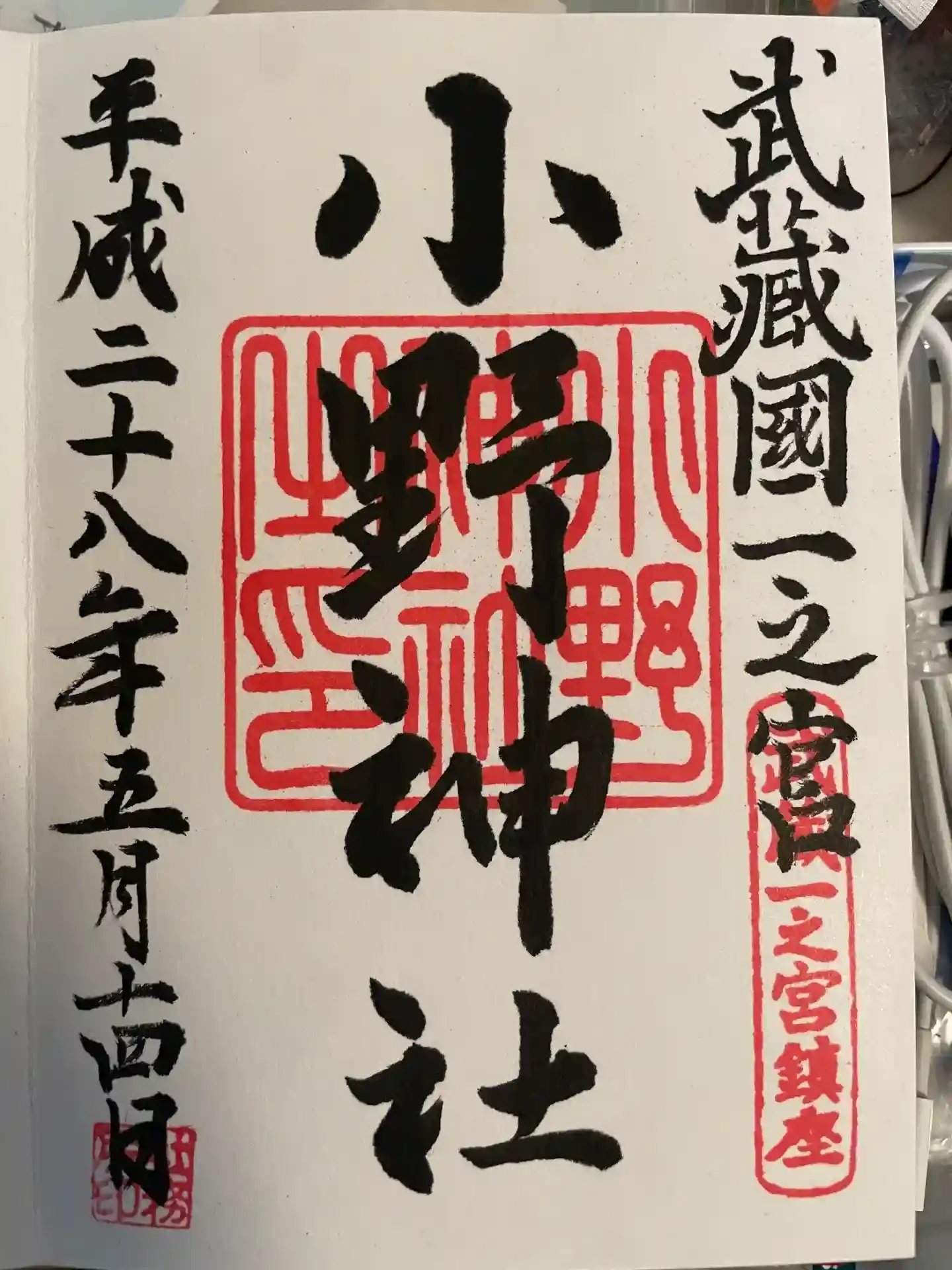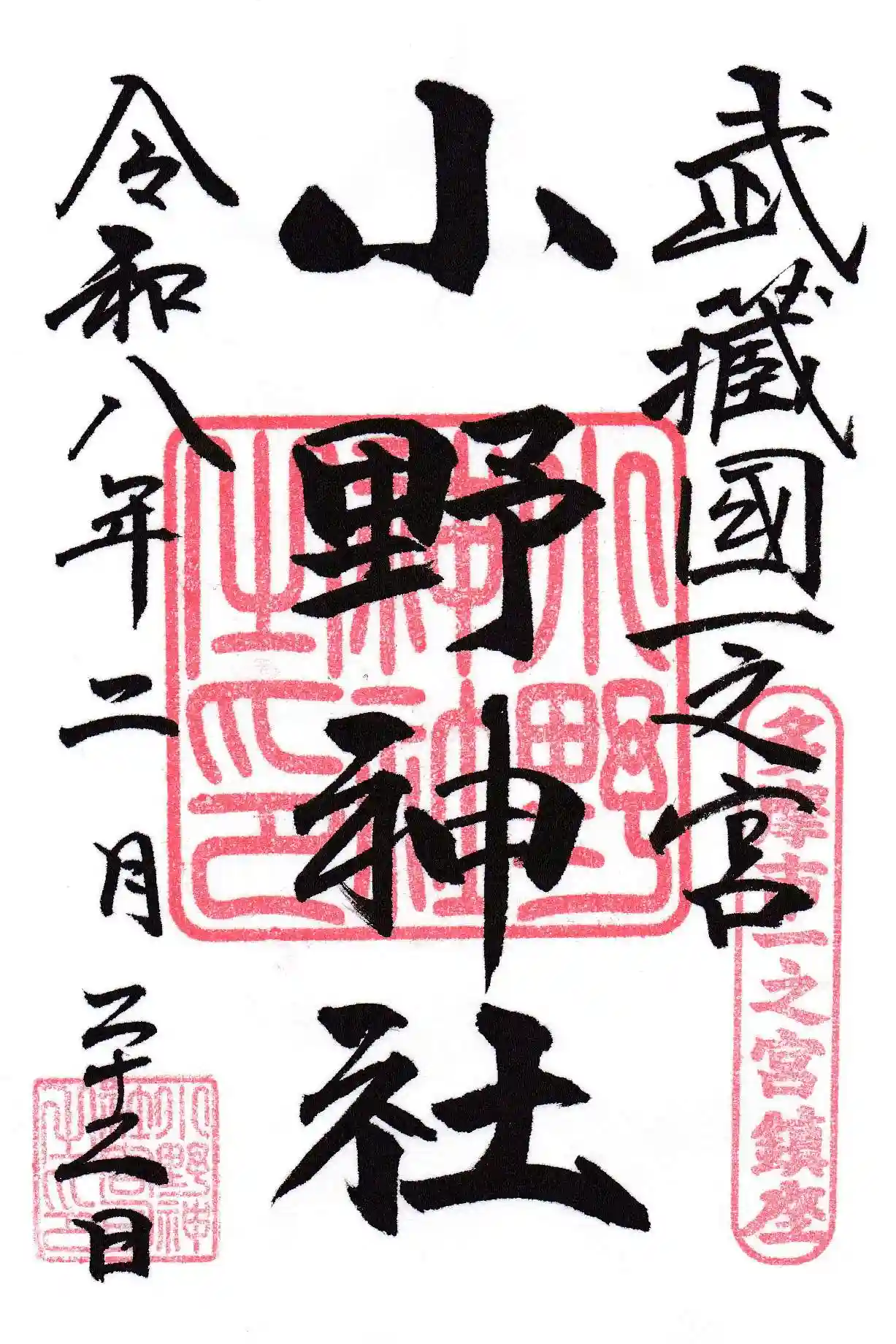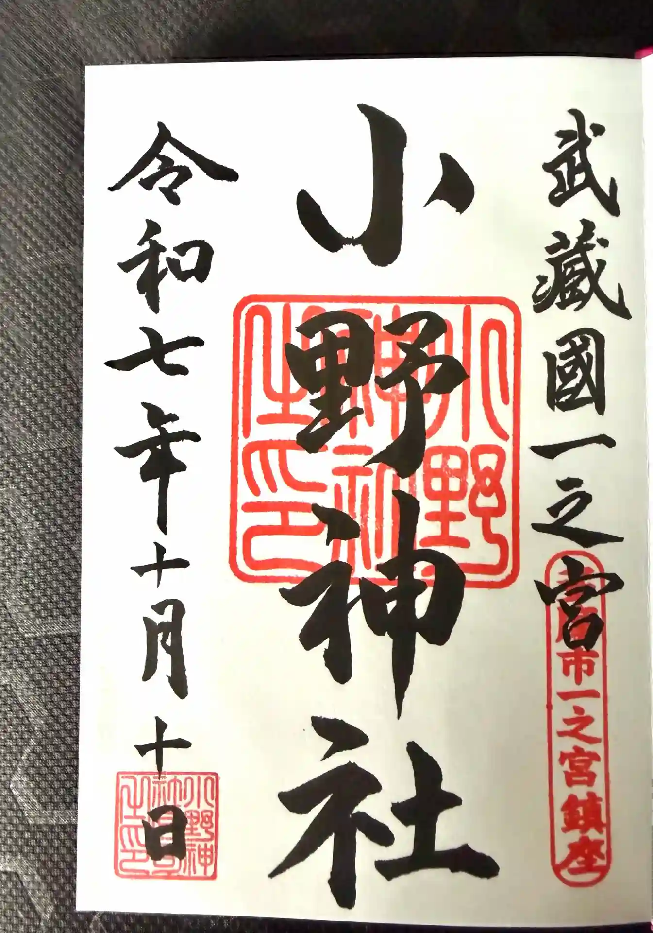 武蔵国一宮は諸説ありますが、小野神社の御朱印には武蔵国一宮と記載があります。