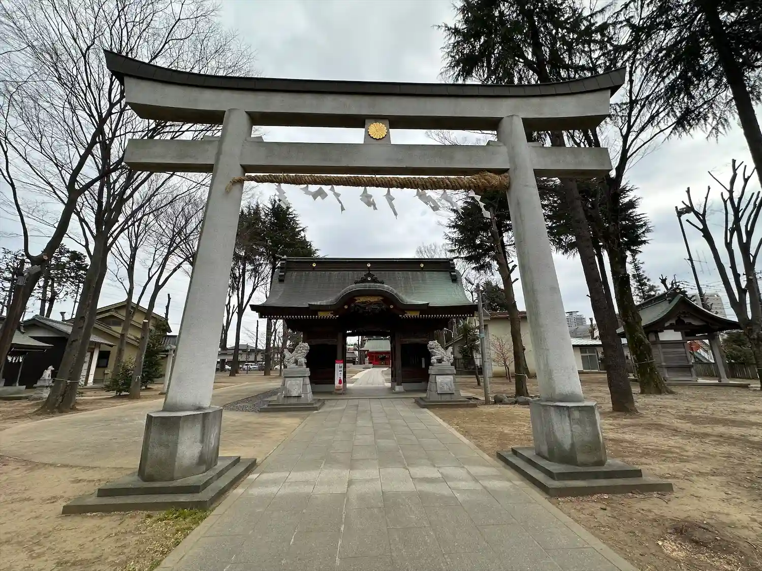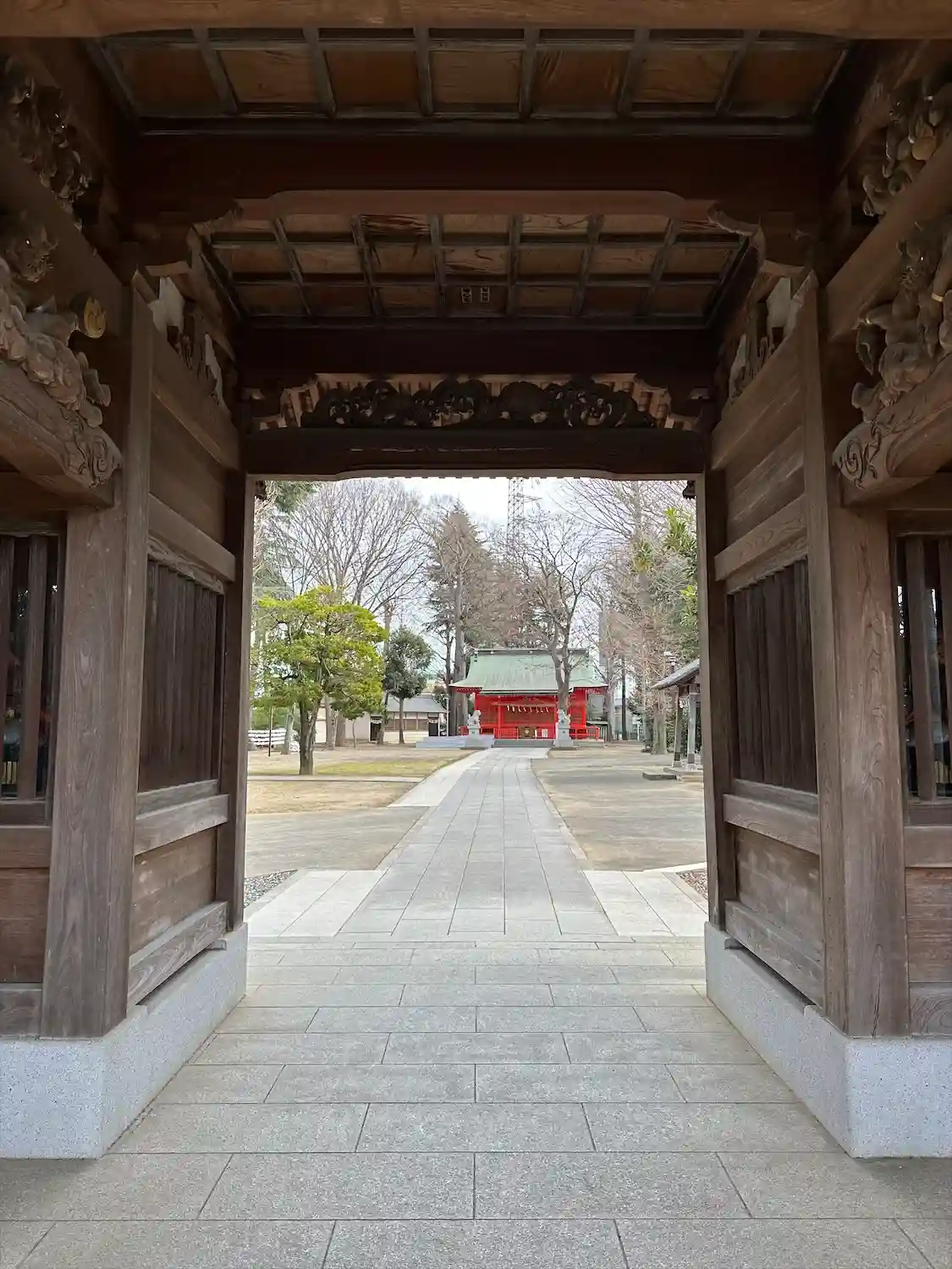 隋神門をくぐったところ。だだっ広くて何もないが、よく掃き清められていて気持ちが良い。季節が違うと立木に青葉が茂るので印象が違うかも。