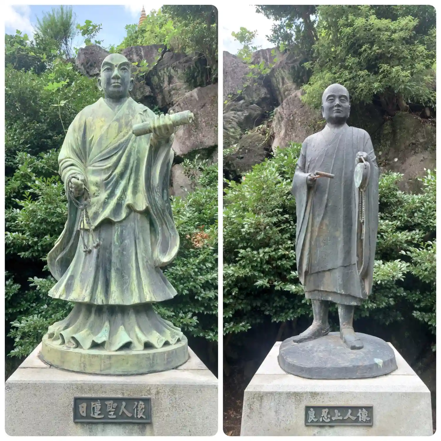 森の中には、平安時代前期の一木造りによる聖観世音菩薩像や、鎌倉期の妙見菩薩像(重要文化財)をはじめ、釈迦如来殿(仏舎利と聖髪を安置する白亜のパゴダ)、多宝塔、八祖師像などが安置され、宗教的な荘厳さと文化財的な価値を兼ね備えています。