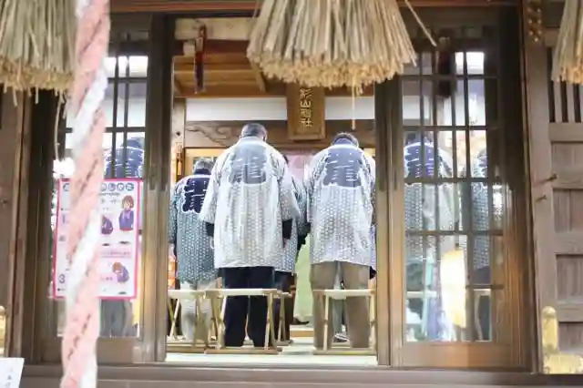 昇殿して神事を行ったのち、神主さんと氏子の皆さんが社務所に移動。