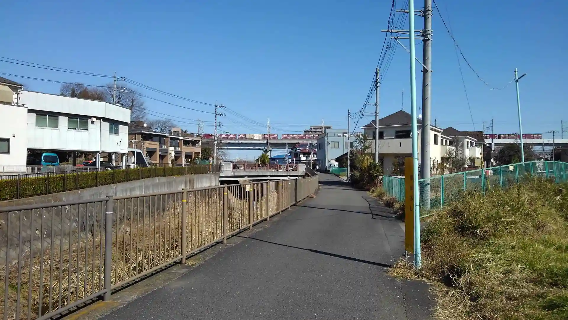 上の広場から出てすぐ道路渡り郵便局横入って京王線線路沿いにいく。