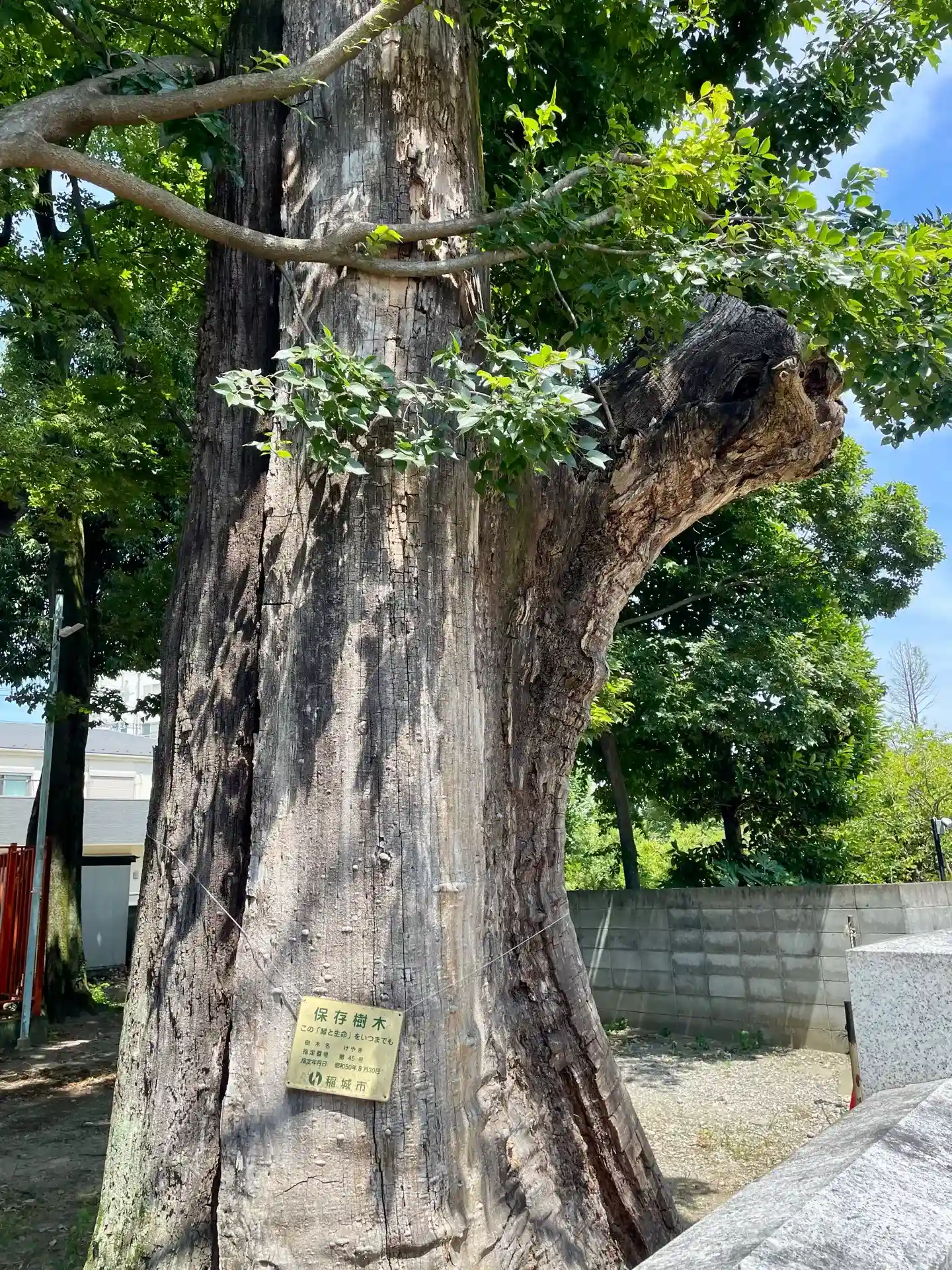 社殿右側の境内社。写真左側の、朽ちた古巨木がすごい。