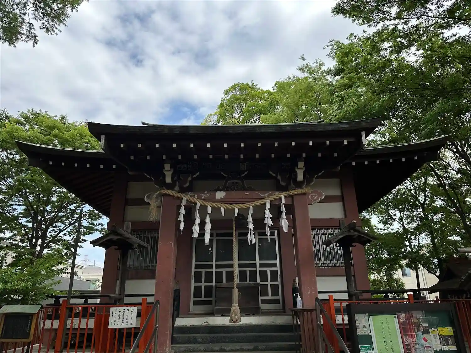 東京都稲城市東長沼に鎮座する神社で、祭神は青渭神、猿田彦命、天鈿女命の三柱。