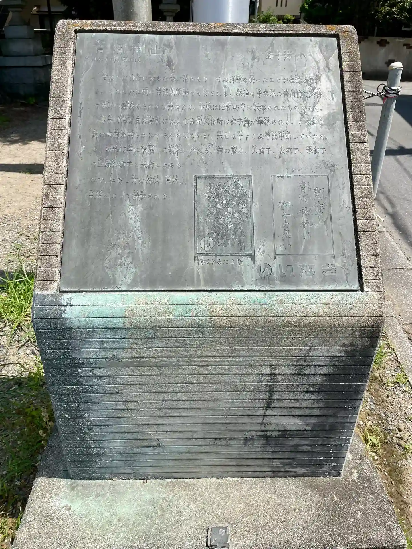 一の鳥居の<石製扁額>には、かすかに「青渭神社」と読み取れる。
