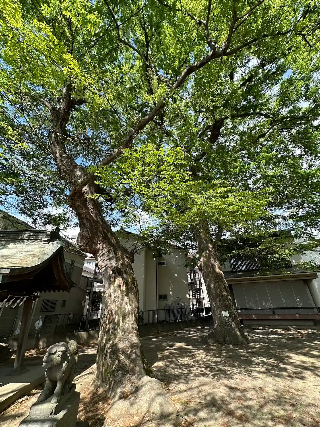 社殿右側の境内社。写真左側の、朽ちた古巨木がすごい。