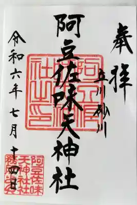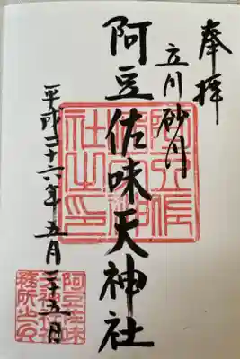 阿豆佐味天神社 立川水天宮の御朱印・御朱印帳
