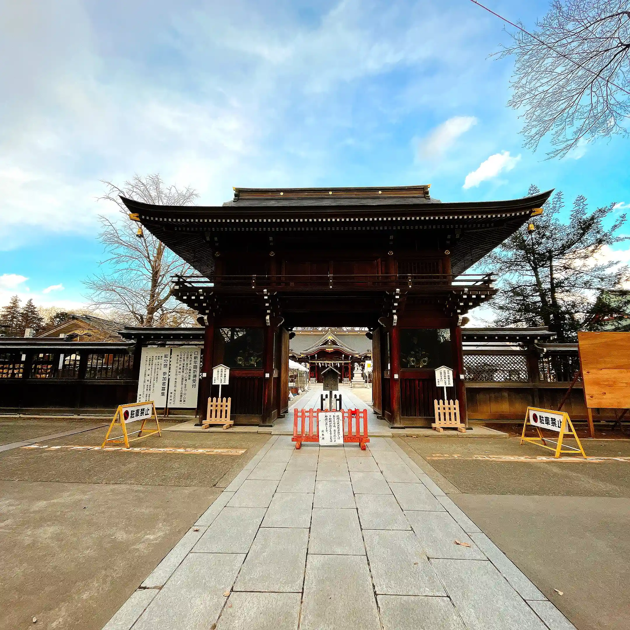 16時過ぎに立川市の諏訪神社へ♩お正月にあったであろう屋台を片付けている最中でした