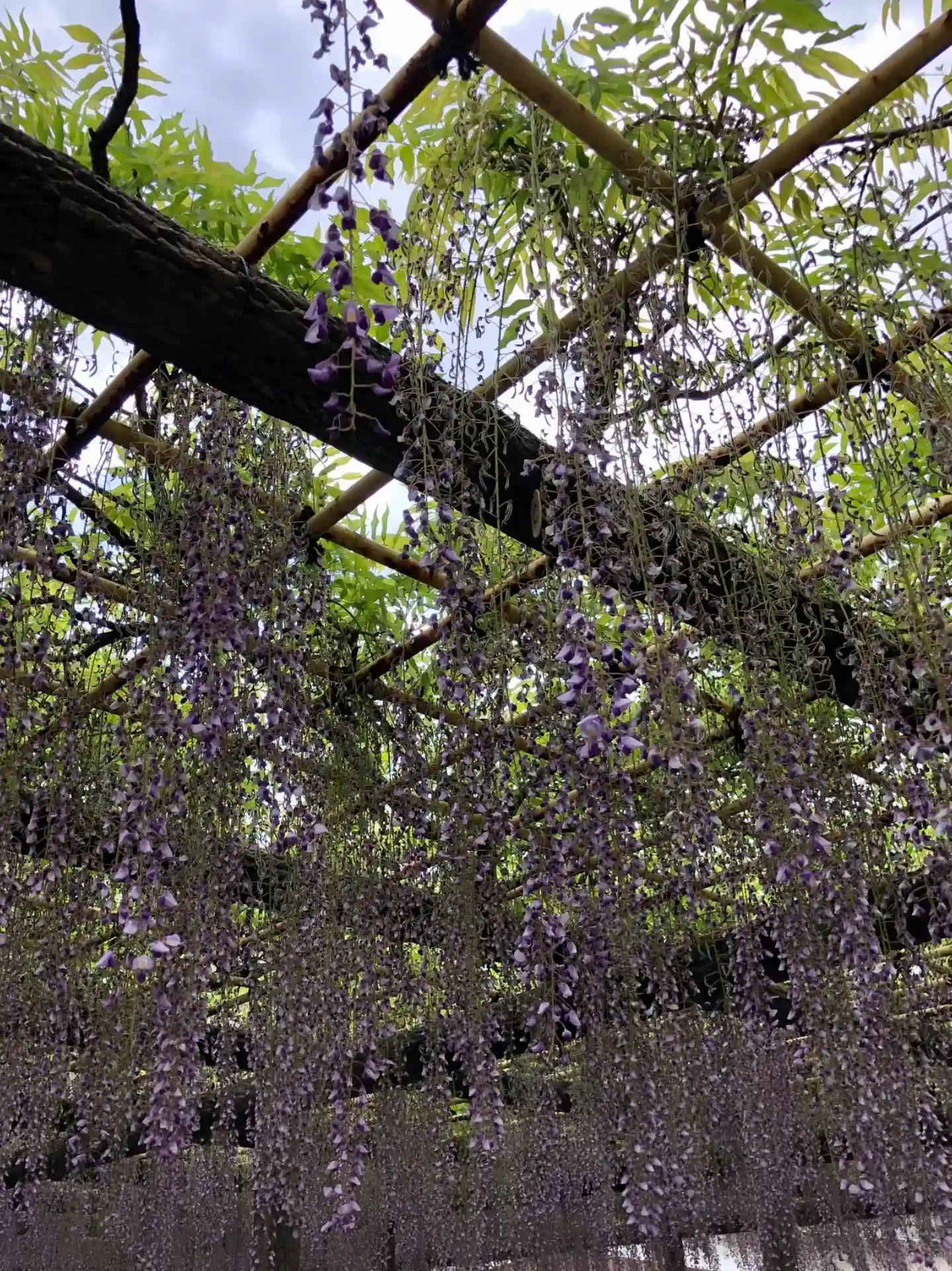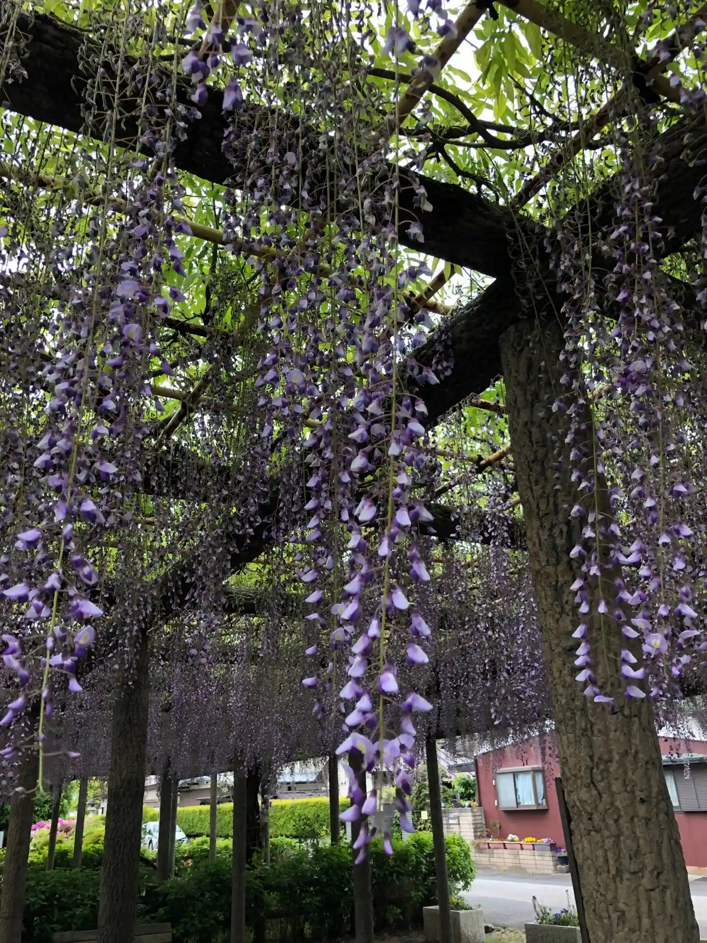 拝島普明寺大日堂。境内にある樹齢800年とされる天然記念物「拝島のフジ」を見物に。見頃は若干過ぎていましたが、見物に訪れる人で賑わっていました。
