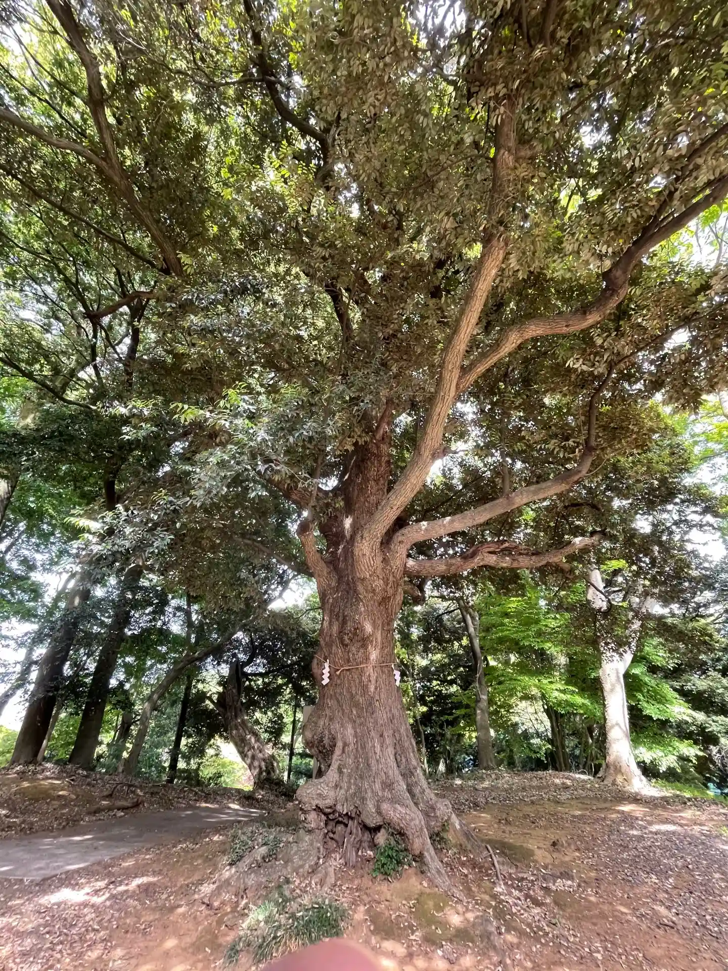 三沢砂土緑地の心地よい森の山道を10分歩くと百草園に出ます。百草園の先にあるのが百草八幡神社。御神木は樹齢300年とも言われる珍しいスダジイ。市の天然記念物に指定されています。