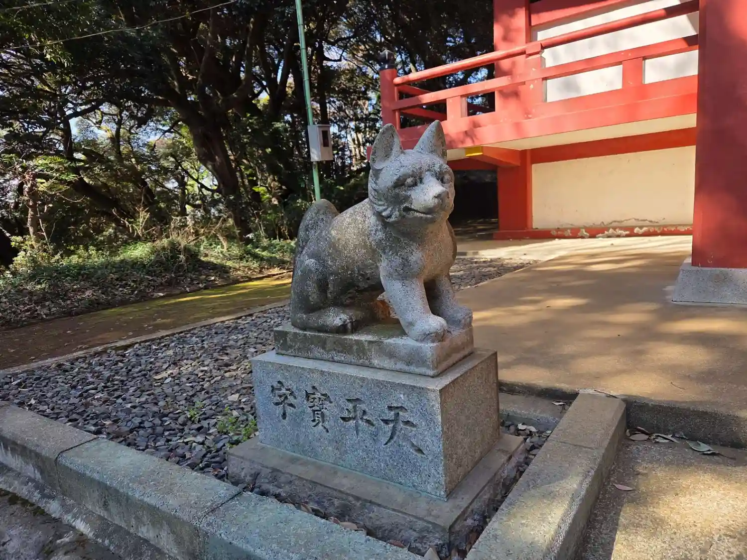 狛犬 社宝の石造狛犬には奈良時代・天平(729~749年)の刻があるそうですが、昔の写真にはこの位置に小さい痩せた狛犬がありました。恐らく大事に保管されているので新たなレプリカに代えたのだろう?
