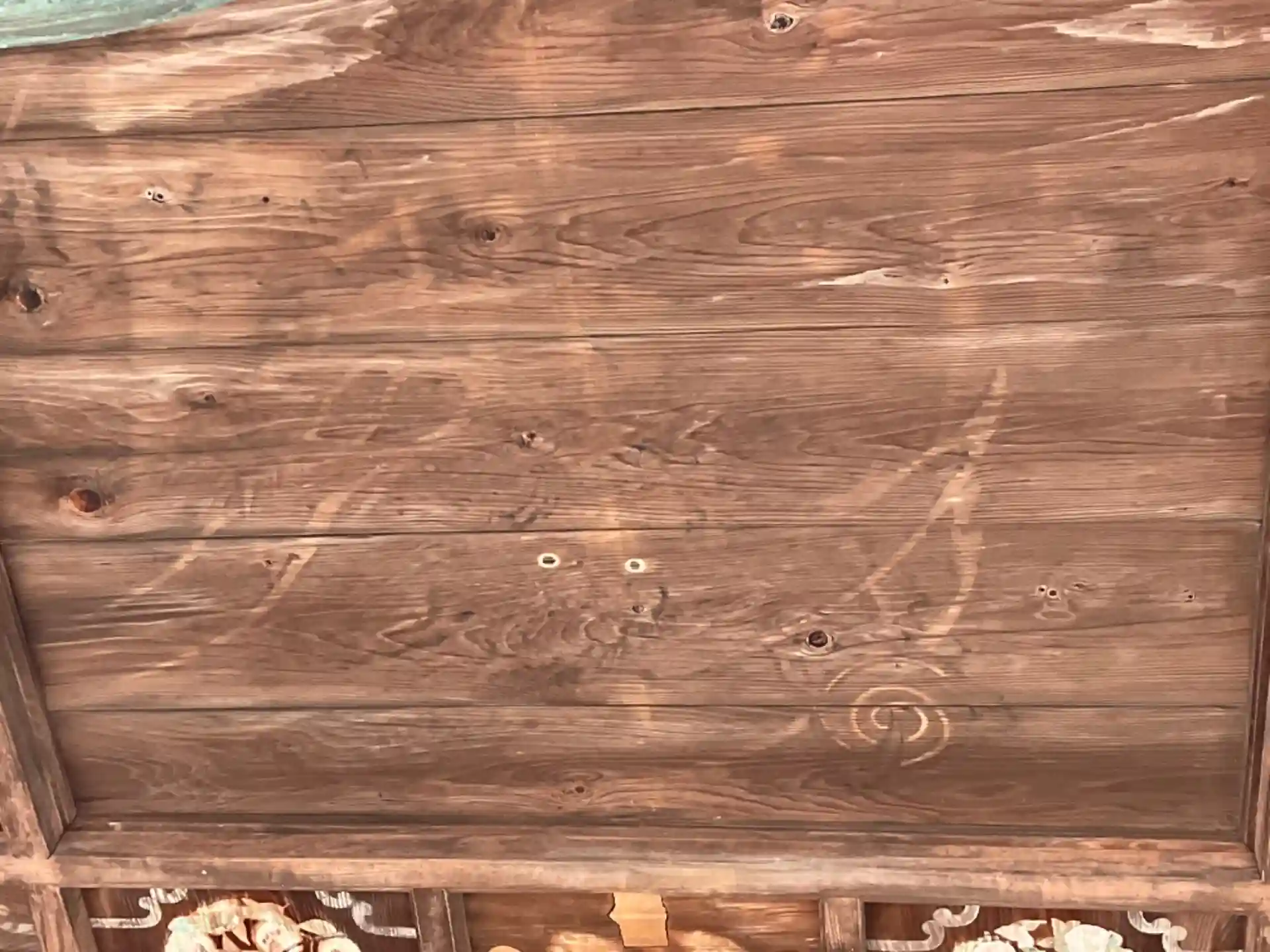 観音堂の天井の花弁図。中央は「龍」です。