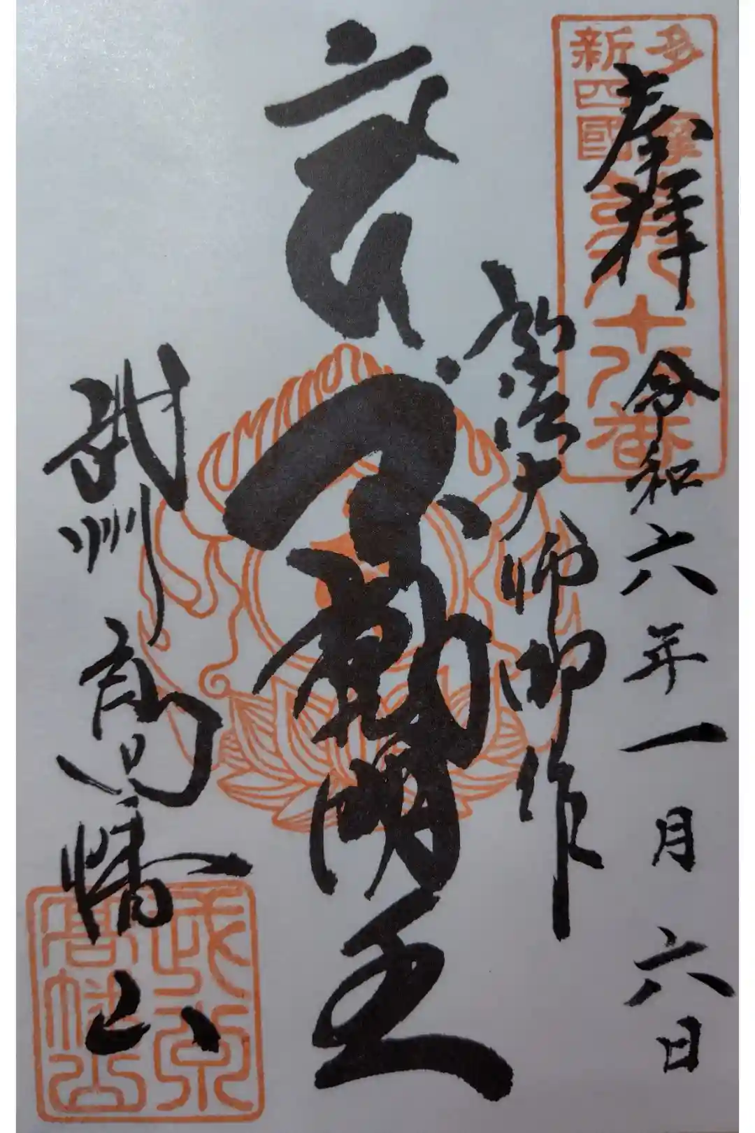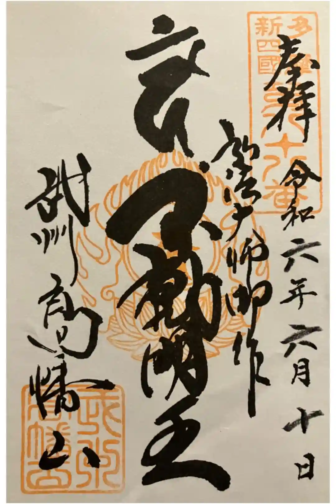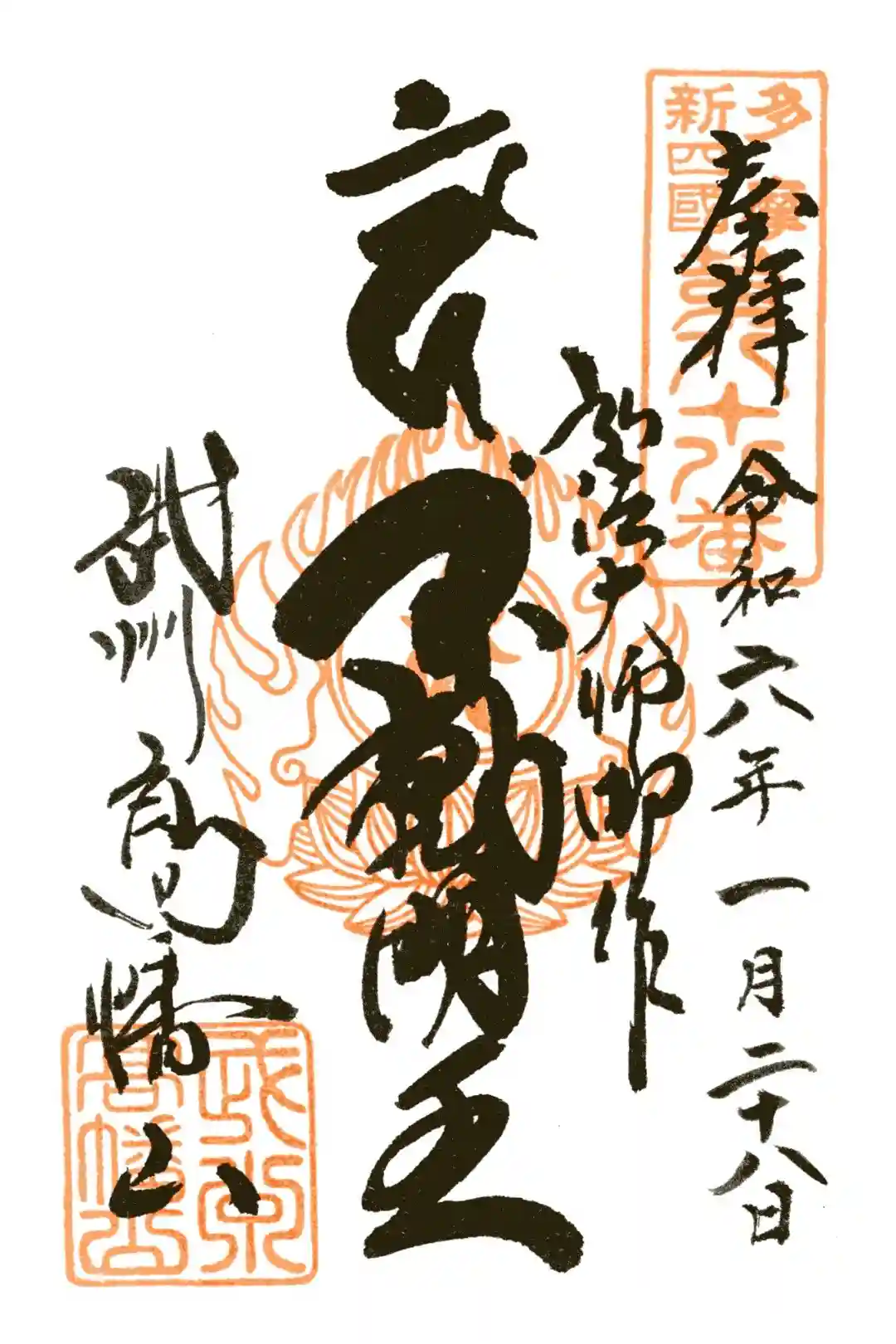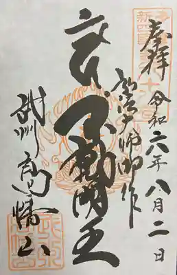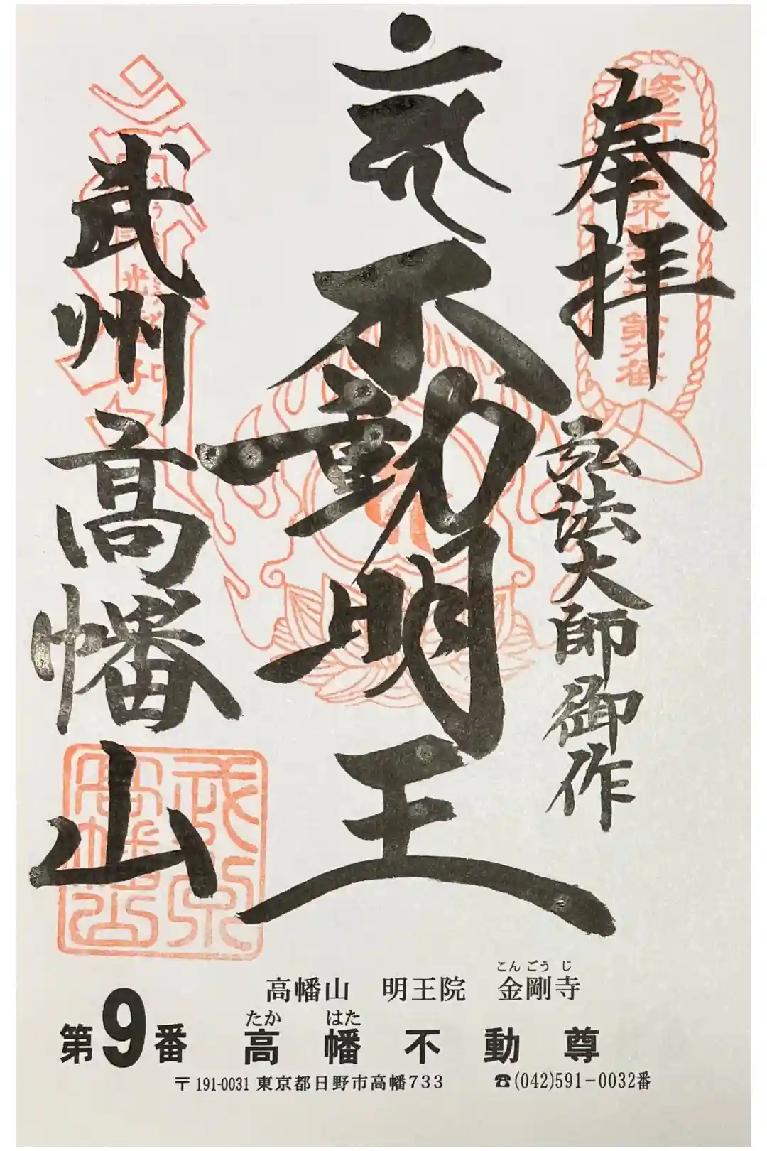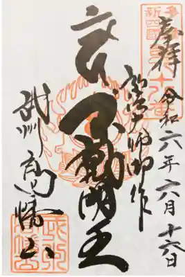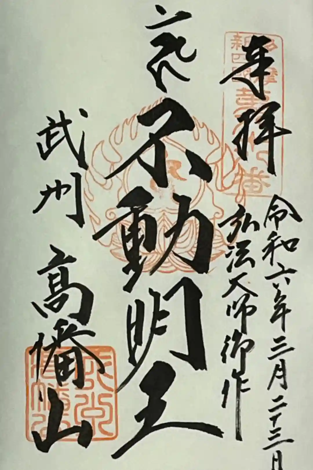 『多摩新四国第八十八番 奉拝 令和六年十一月三十日 弘法大師御作 不動明王 武州高幡山』