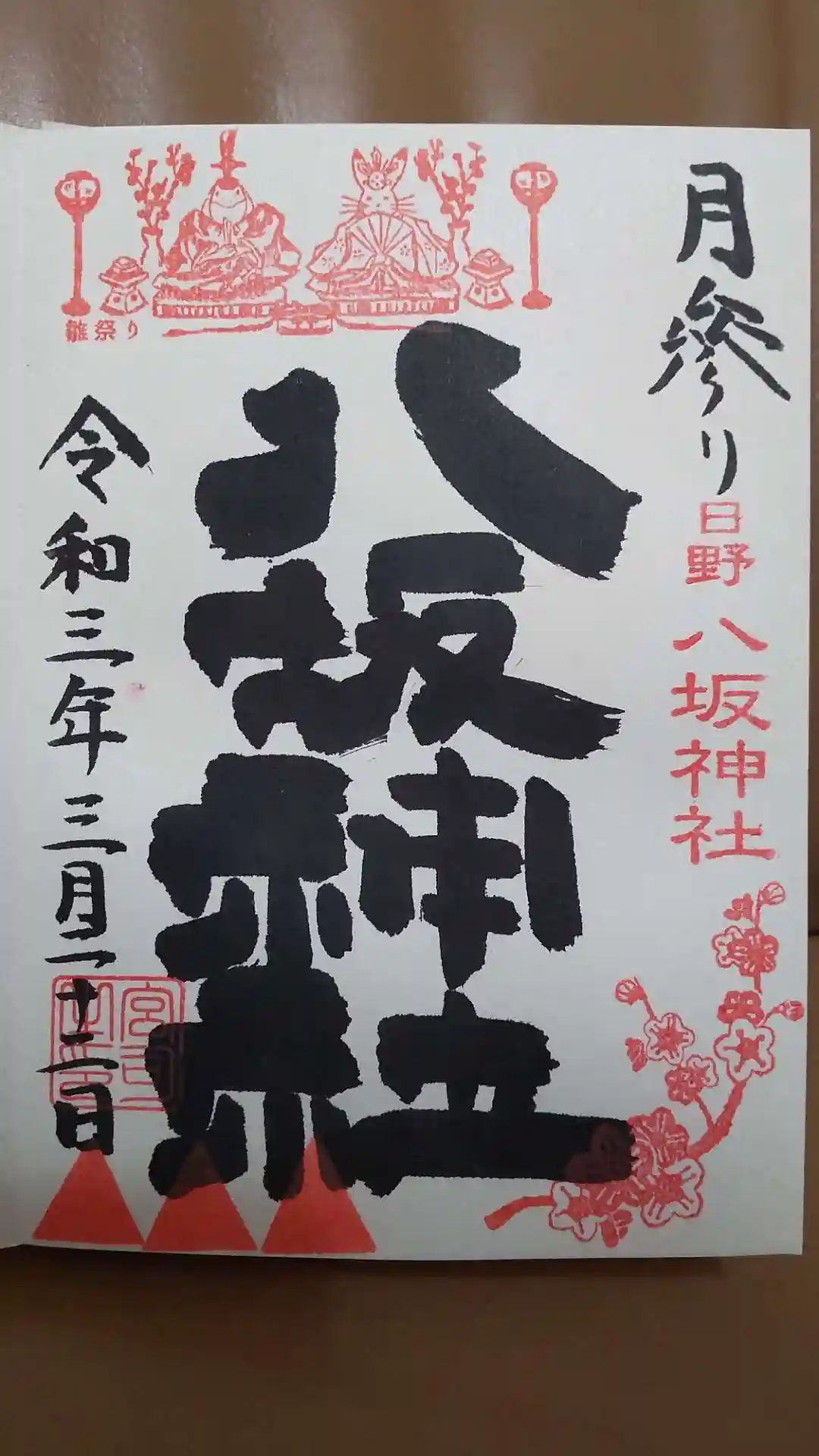 子安神社で参拝後、日野八坂神社に足を運び、月参り御朱印等をいただきました。