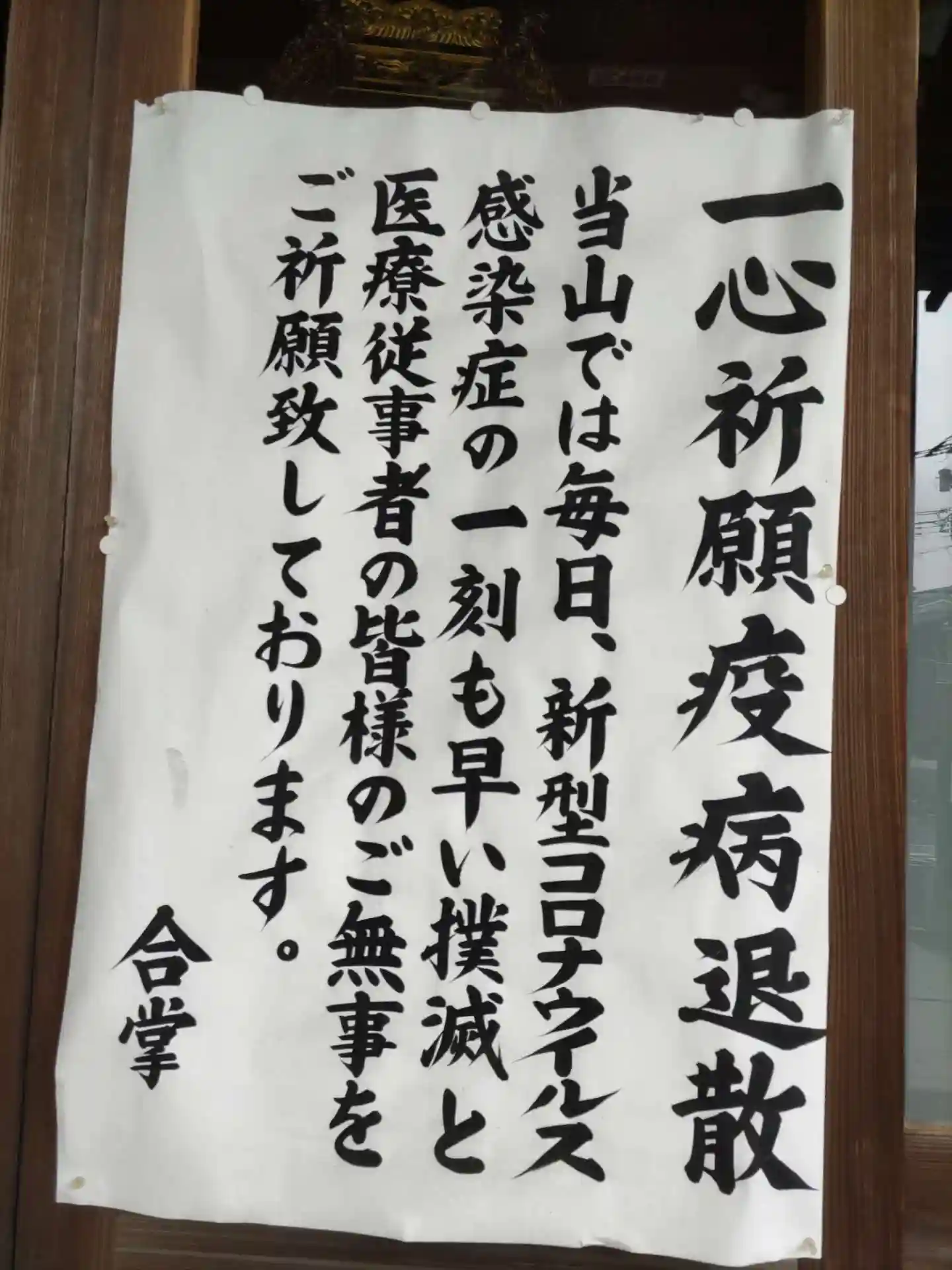 お寺玄関に張り紙されていらっしゃる!