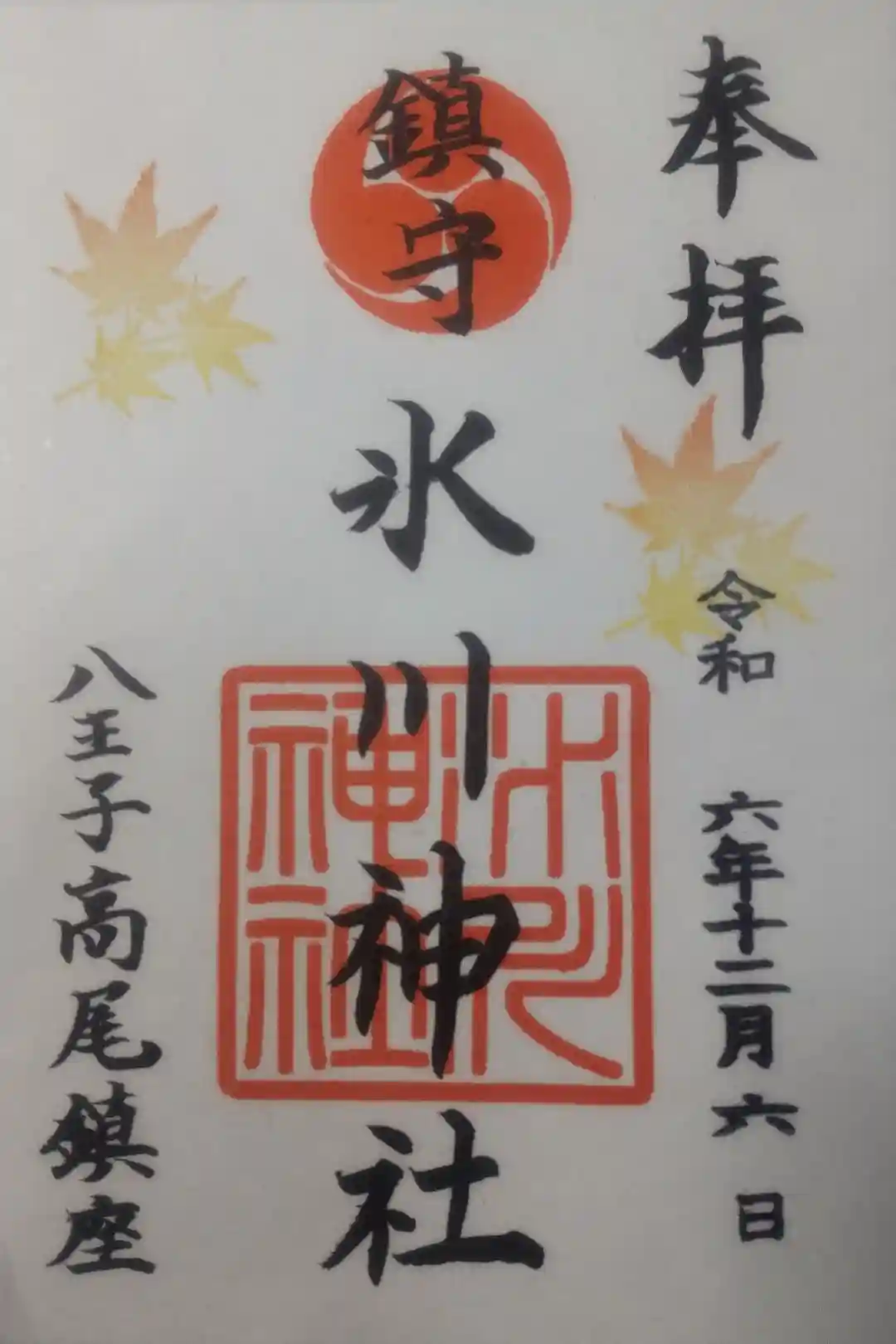 高尾山麓氷川神社の御朱印・御朱印帳