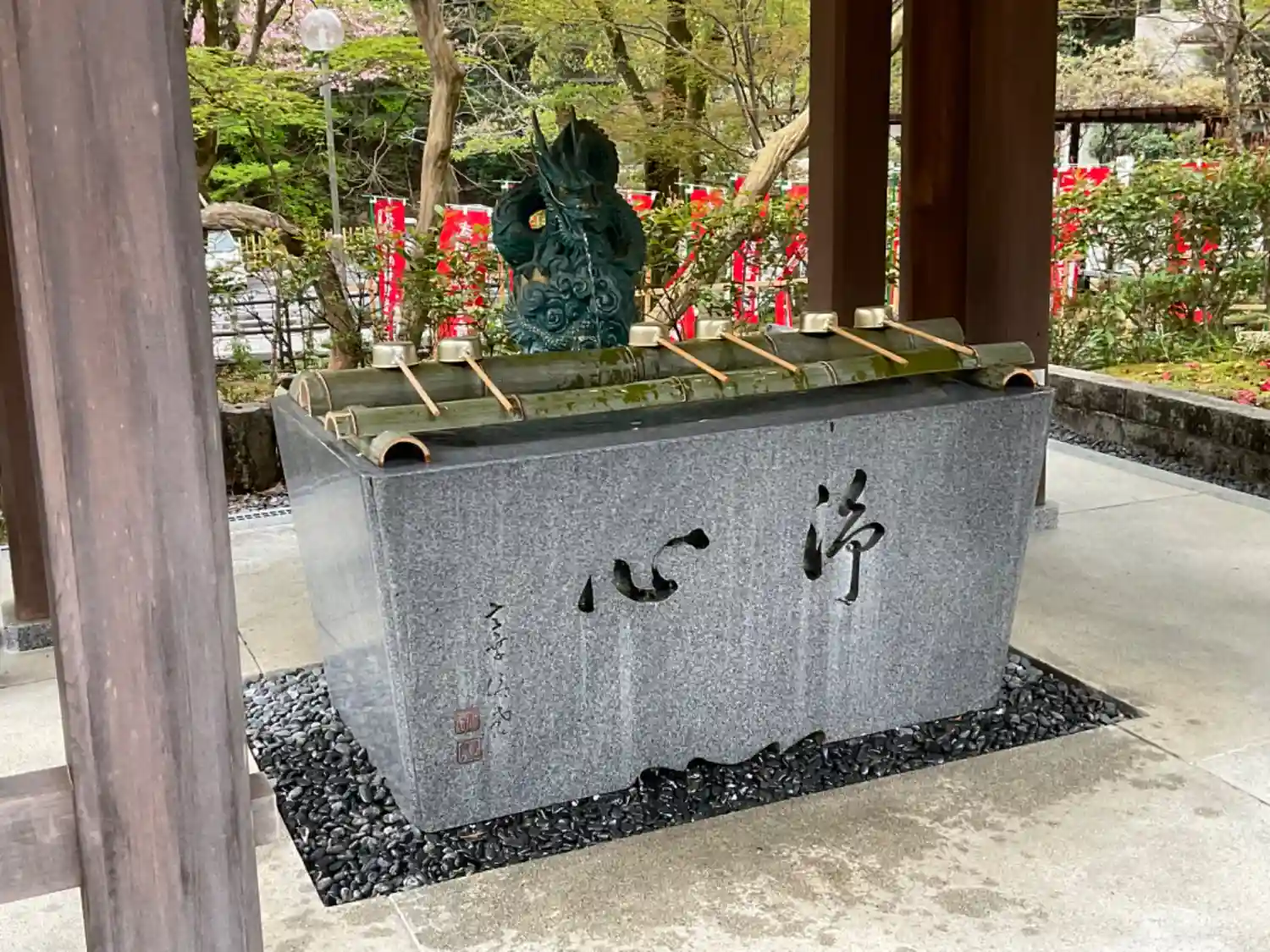 本堂前の池には八尊仏が安置されています。