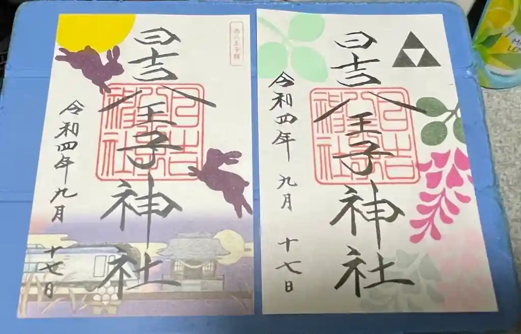 9月限定御朱印が萩の絵柄、御朱印めぐりの御朱印が月とうさぎなので二枚並べると秋の風情満載で風流です。