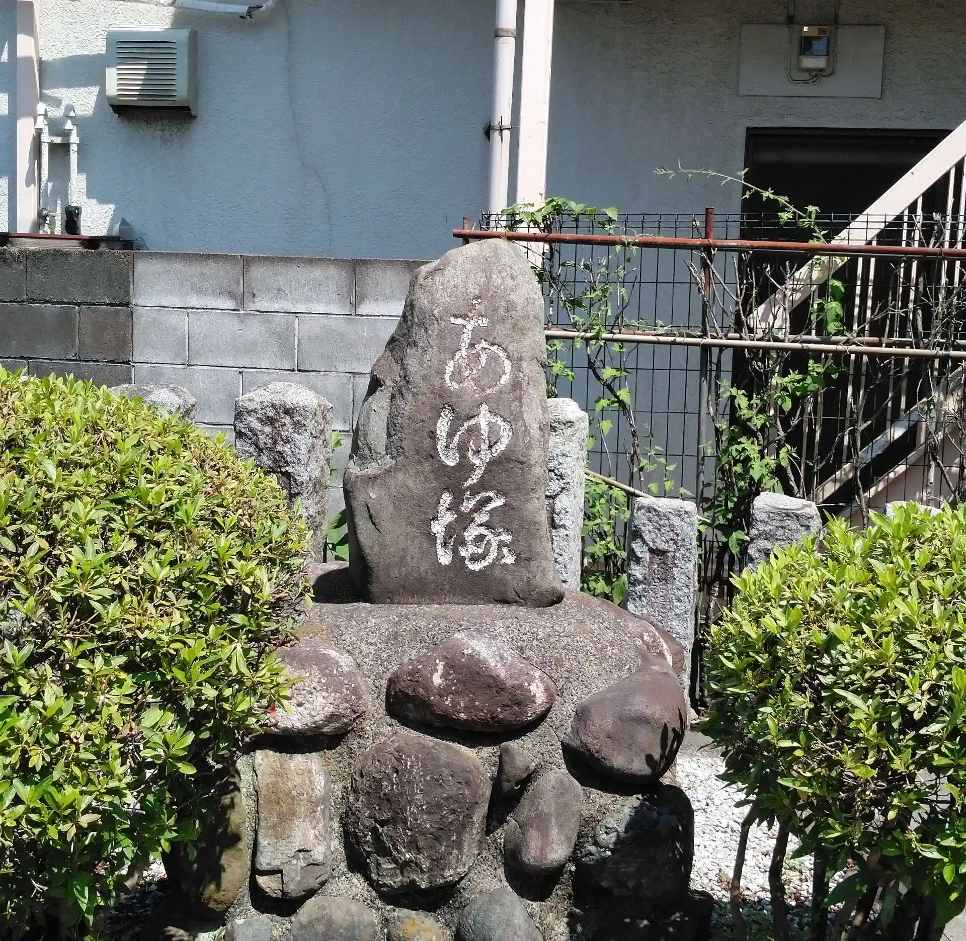 鳥居を入ってすぐのところにある「あゆ塚」。