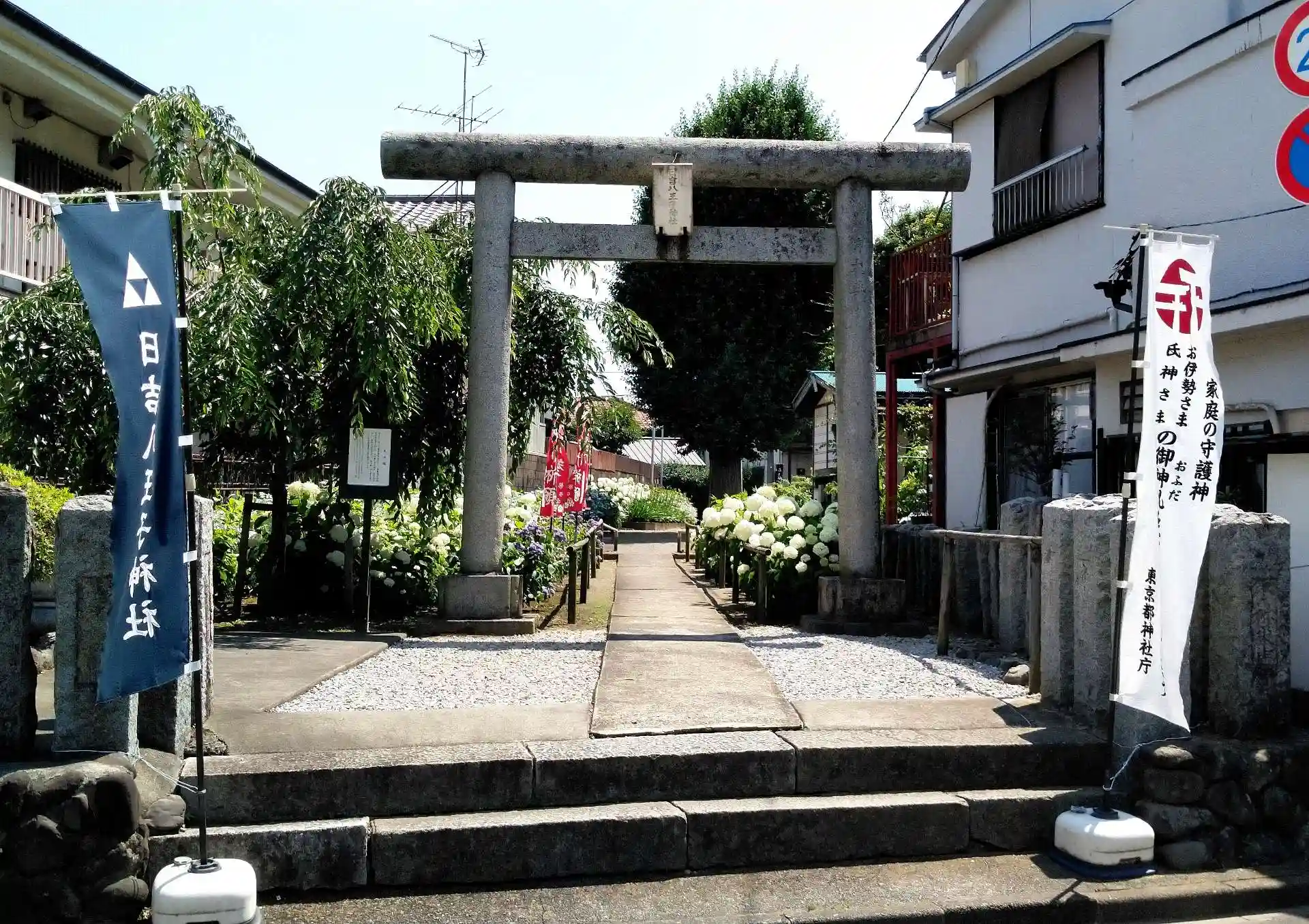 小ぢんまりとした境内には、紫陽花がいっぱい!