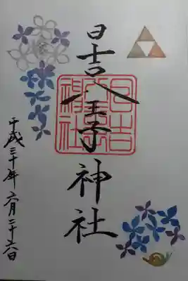 日吉八王子神社、現在の御朱印は紫陽花と千鳥柄の御朱印です。
