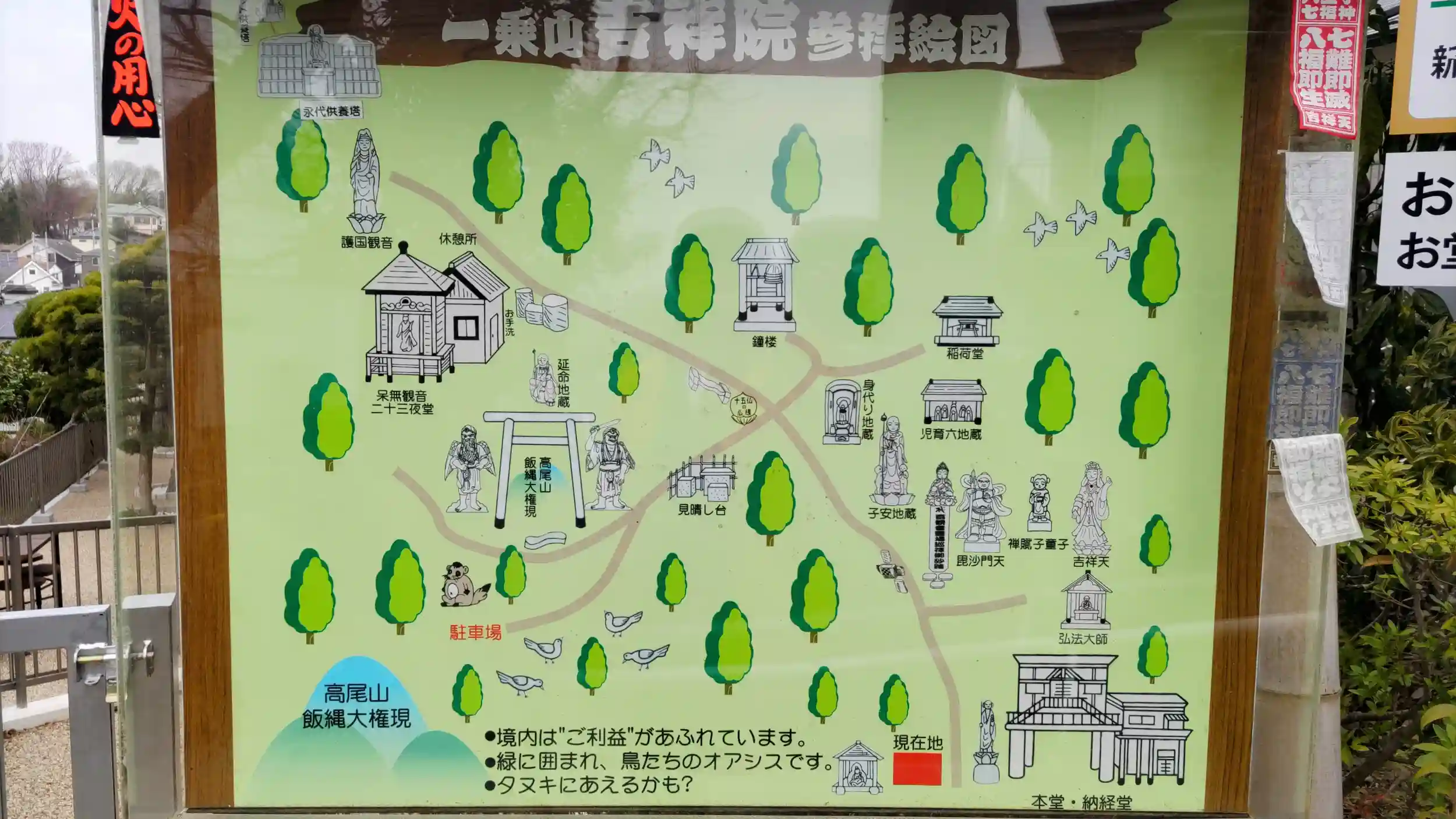 小高いところにあり、周りの道が狭いので気をつけてお参りください。