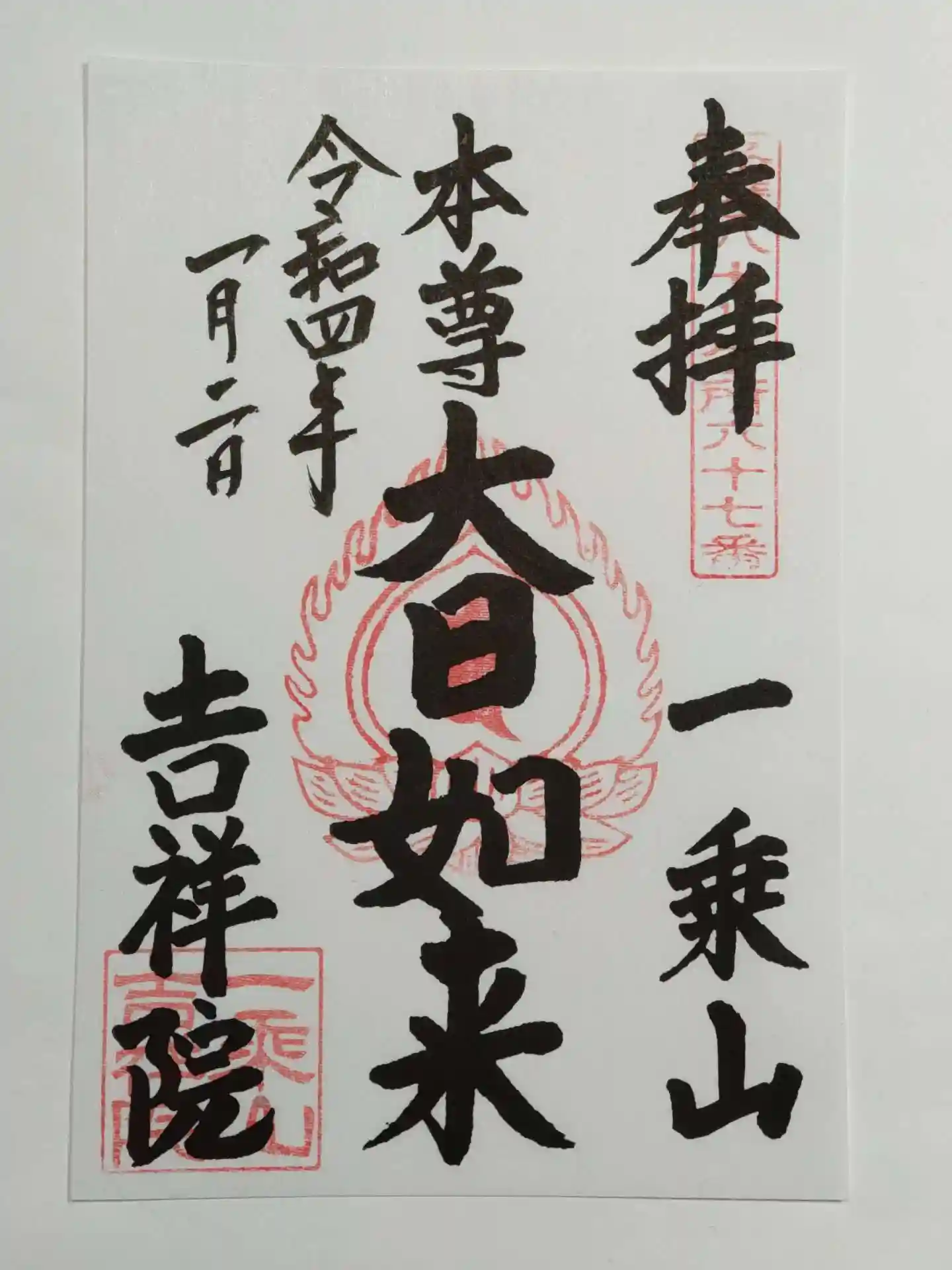 ご本尊の大日如来様の御朱印は直書き頂きました。