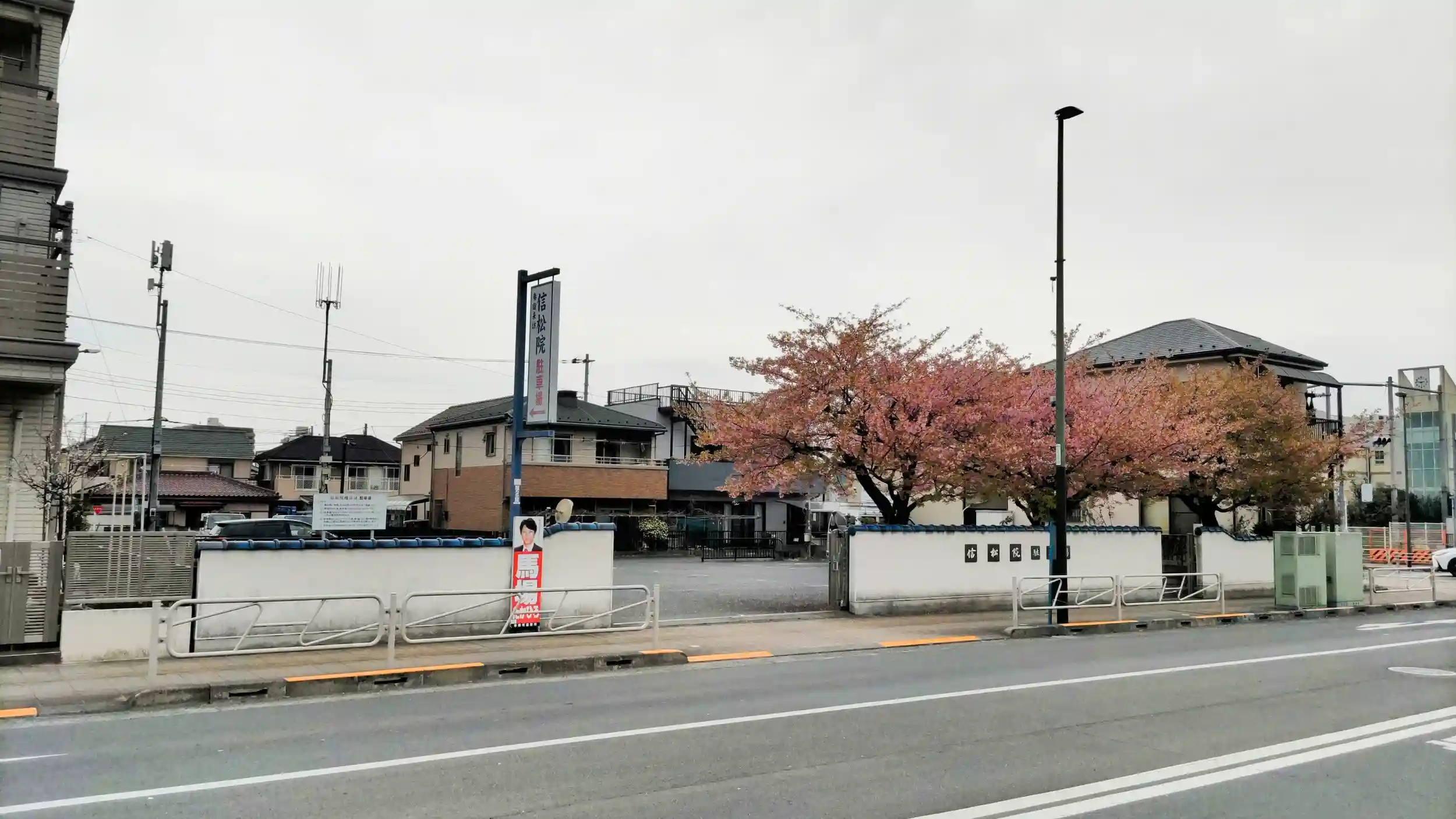 お寺側と道を挟んで反対側に駐車場があります。