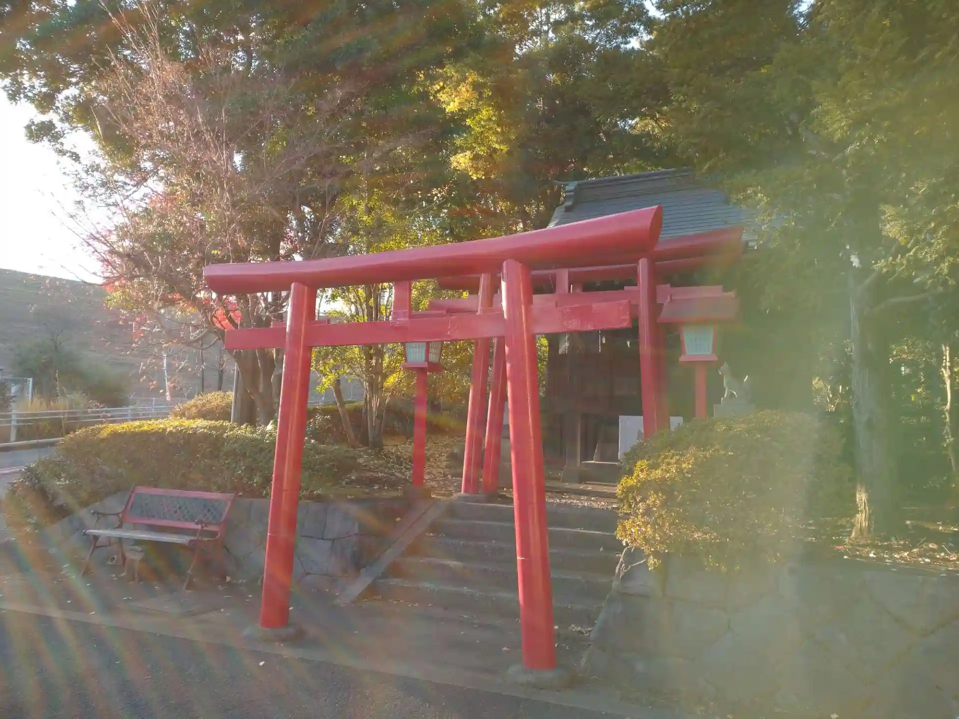 南大沢八幡神社へ参拝した後、隣にある末廣稲荷大明神を訪れました。こちらの方は調べずに行ってから知り、参拝してきました。陽がとても綺麗でいい写真が撮れました。(1枚目)